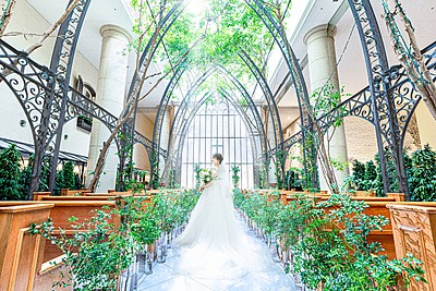 天窓から差し込む柔らかい自然光と幸せの樹に包まれた挙式会場