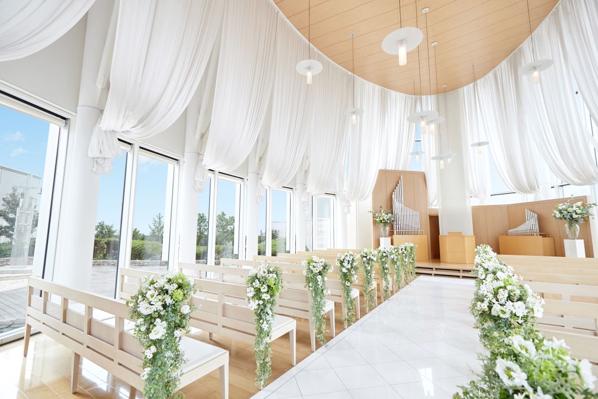 千葉駅すぐの好立地、光差し込む明るいチャペルにてあたたかみのある空間