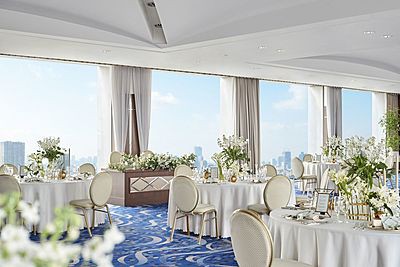360度ガラスに囲まれた光が差し込むクリスタルチャペル。バージンロードにあたたかな陽光が差し込みお二人を優しく包み込みます。四季折々の様々なシーンで、料理長が腕をふるう自慢のメニューをお楽しみください。