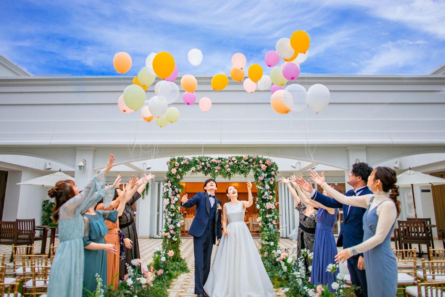 ガーデンでのチャペル挙式で、フラワーガールをお願いしたり、ブーケブートニアを子供達に持ってきてもらったり、リングボーイ、リングガールをお願いしたり、フラワーシャワーでは、フラワーとバブルシャワーにしたりと挙式でも自由に演出を変えることができました。