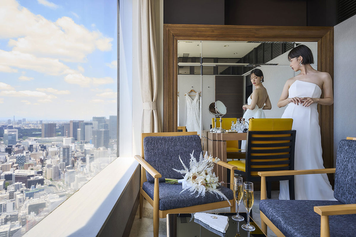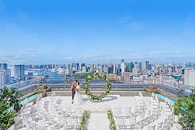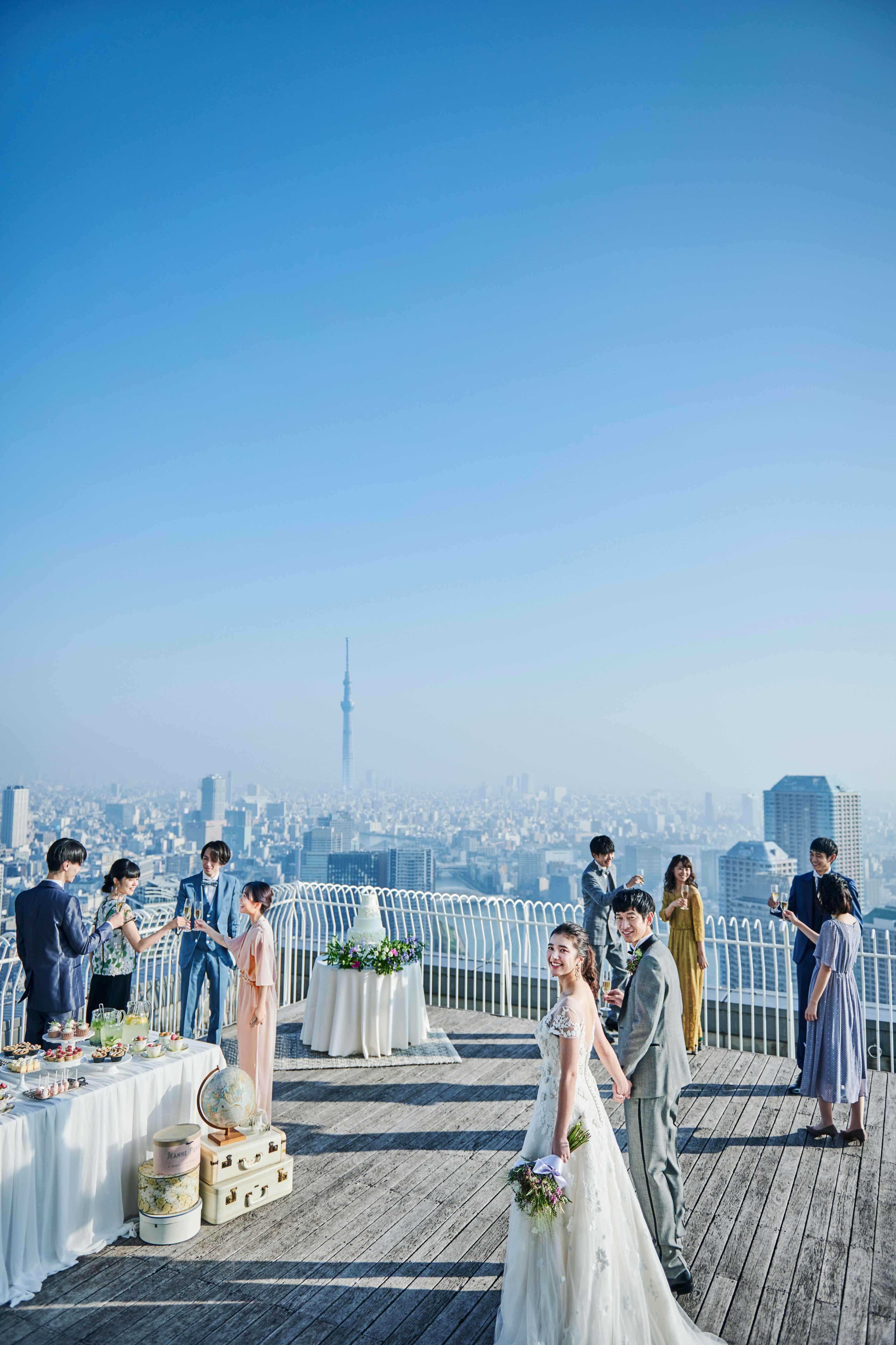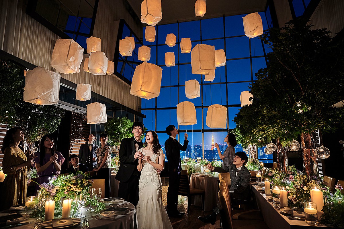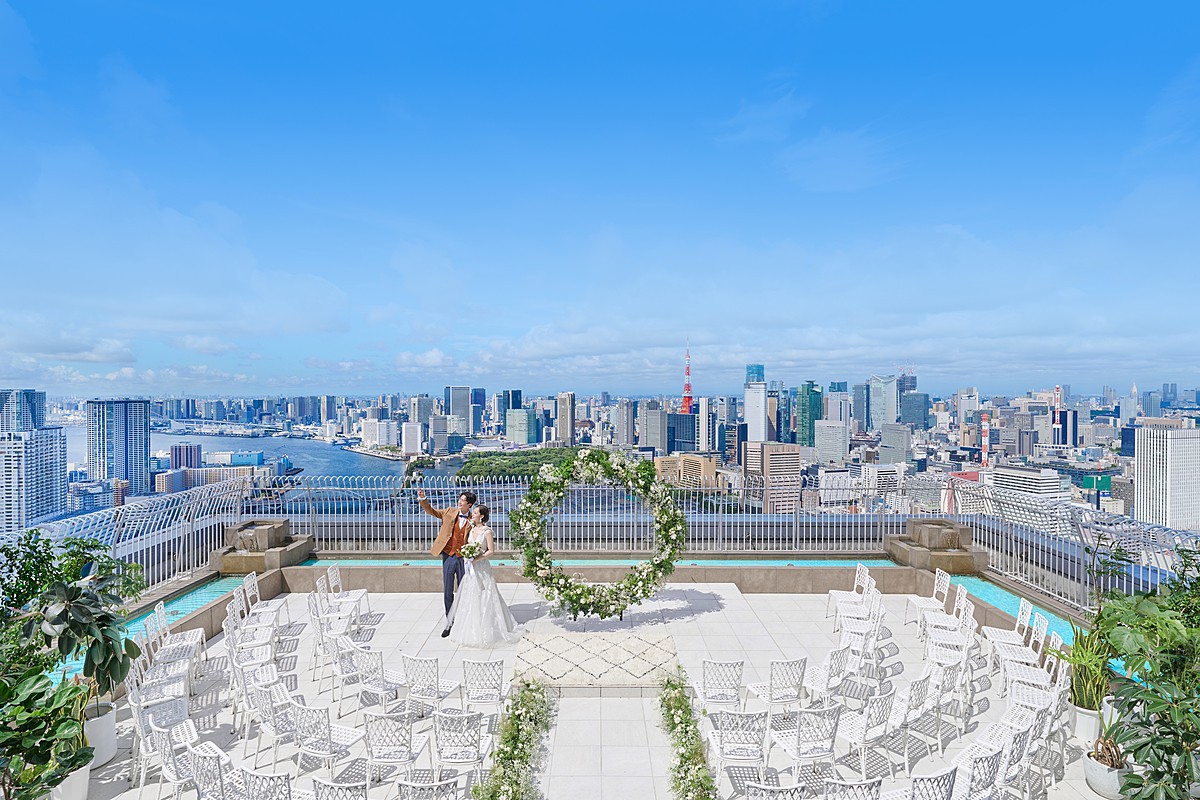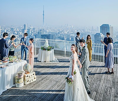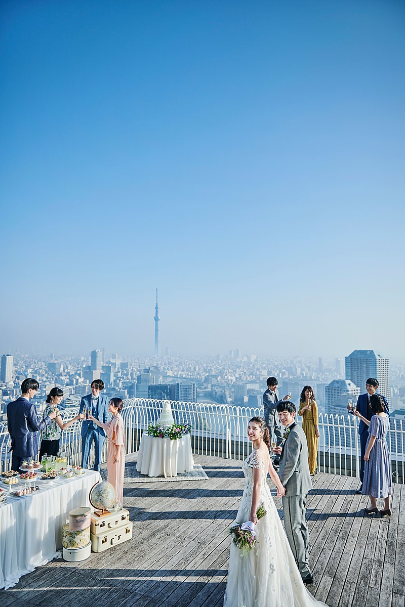 息を呑むほどの圧巻のパノラマビュー。東京で最も空に近い、感動のウェディングが叶う。