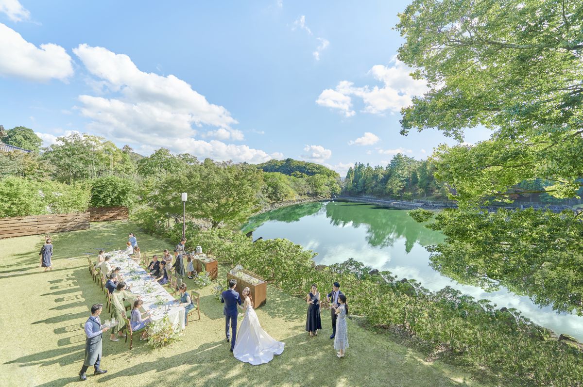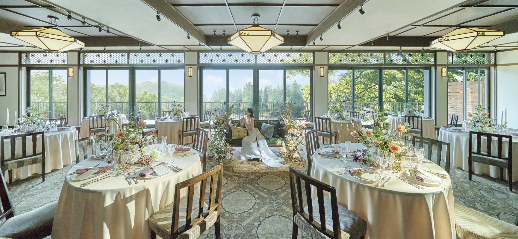 自然豊かな奈良公園内、春日大社の一の鳥居前の立地。明治より受け継がれた美食と伝統が織りなす唯一無二の結婚式場。有形文化財に登録された建物は百年先もおふたりの思い出とここにあり続けることを約束します。
