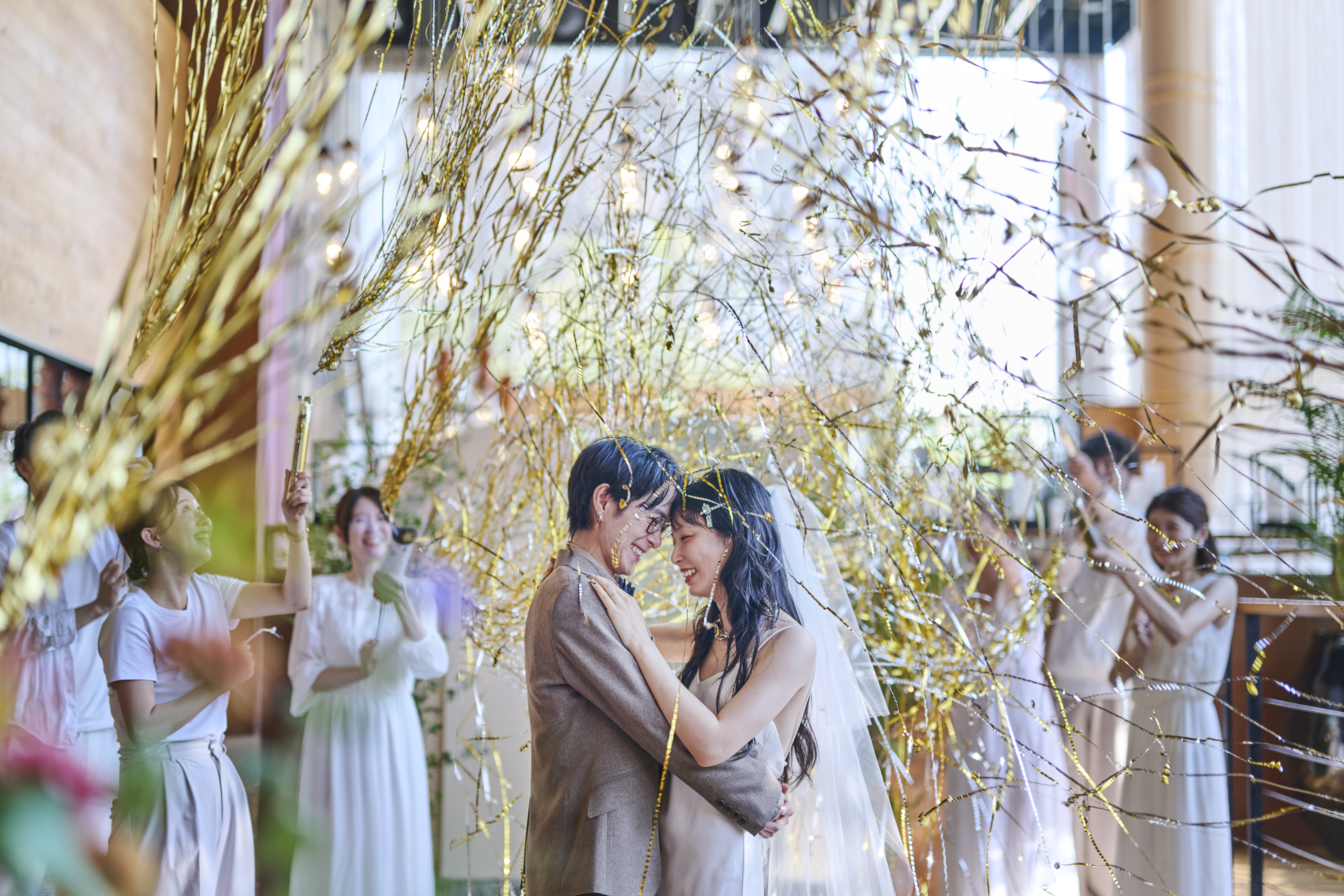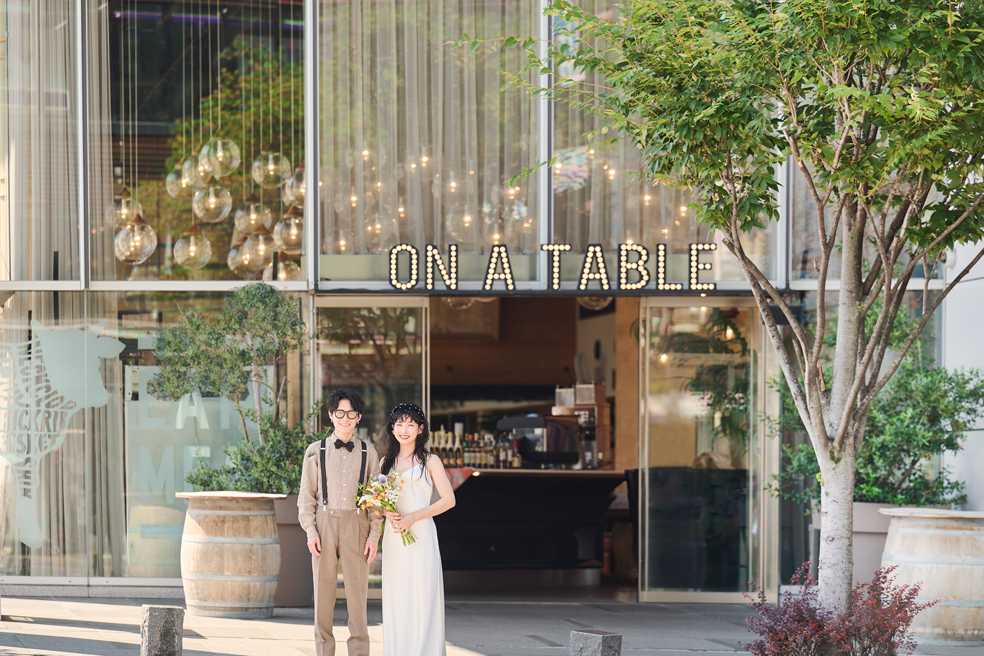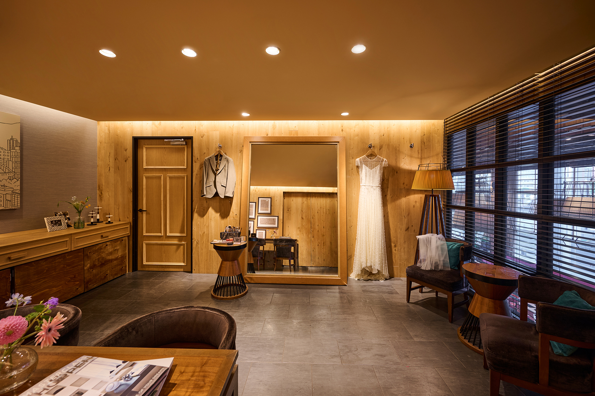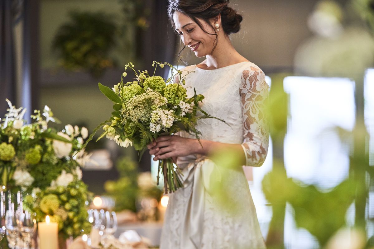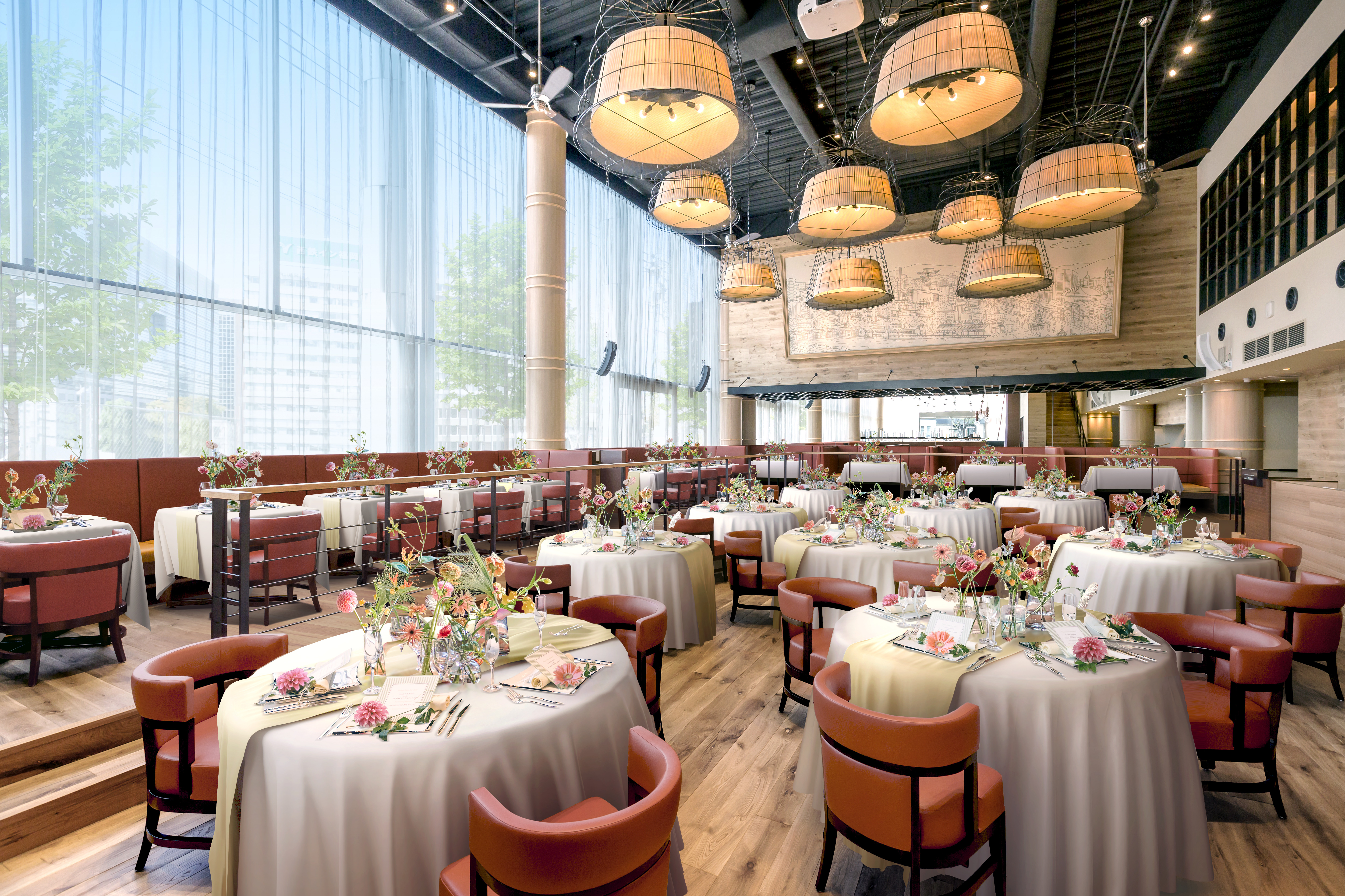 訪れたカップルの多くがひと目惚れする会場は、7mの天井まで届く大きな窓が印象的。昼は明るい陽光が、夜はリバーサイドの夜景が特別な日を彩ります。バーカウンターや控室、クロークなど、充実の設備もうれしい。