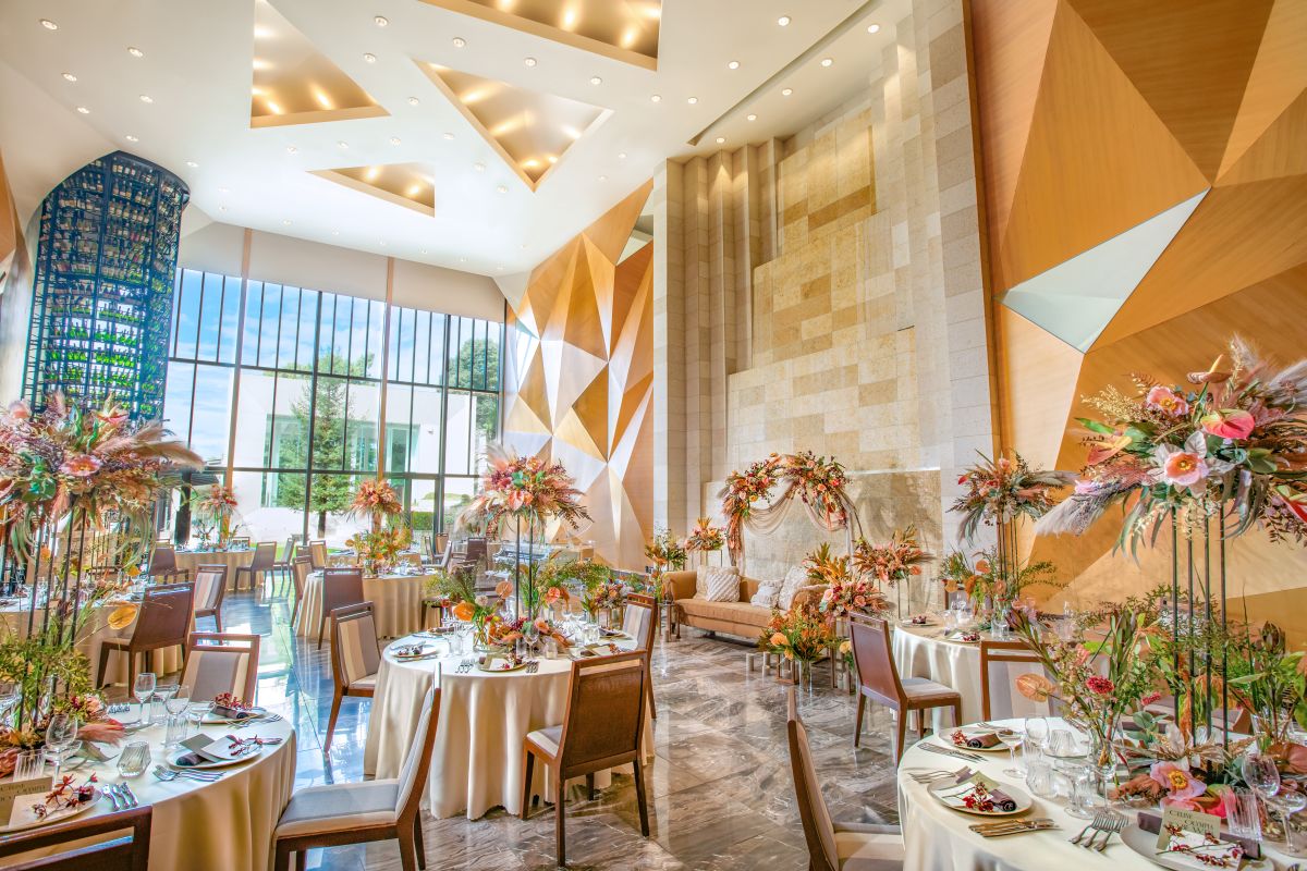 天井高8mもある披露宴会場「リュージョン」と少人数専用の披露宴会場「ストリア」どちらの会場もゲストの皆様との距離が近くあたたか距離感でお祝いの言葉をいただけアットホームなお時間をお過ごしいただけます。