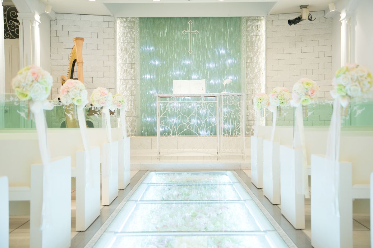 滝のように流れる水の音と花びらが輝くバージンロードは、永遠の愛の誓いにふさわしい舞台になります。