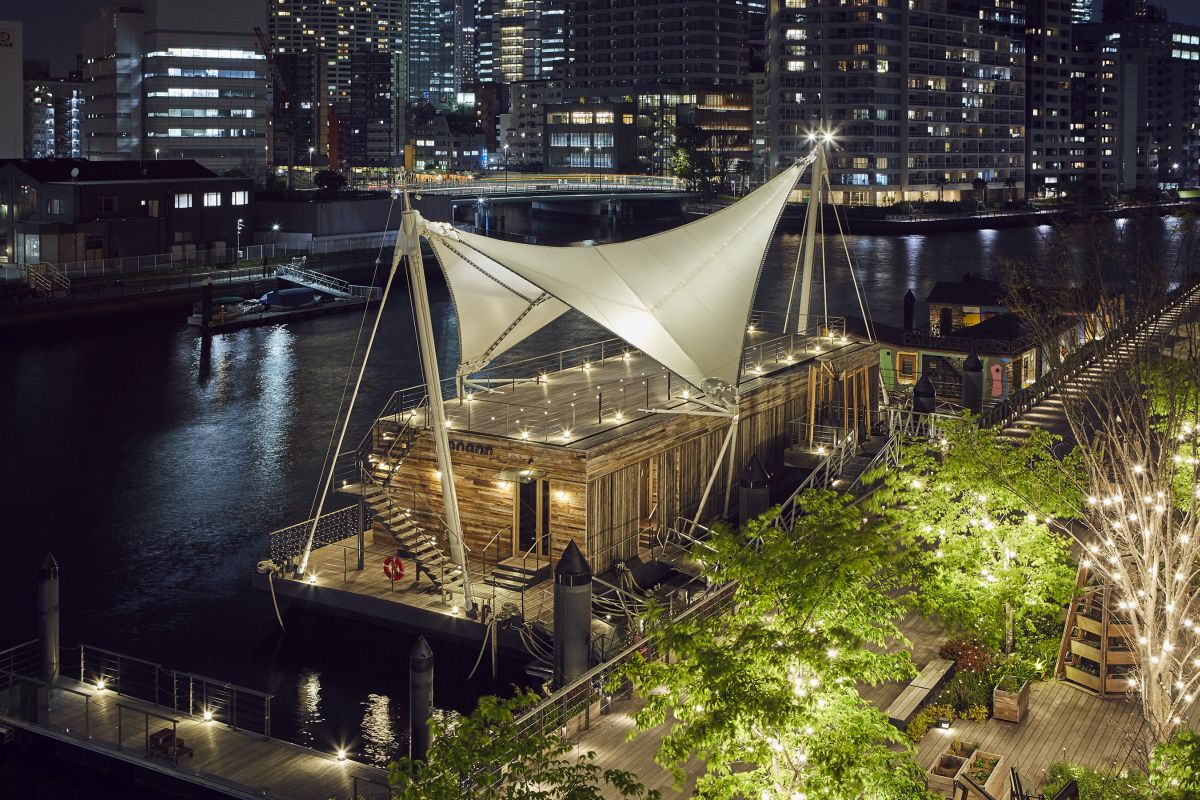 天王洲アイル運河に停泊する船上のルーフトップセレモニー