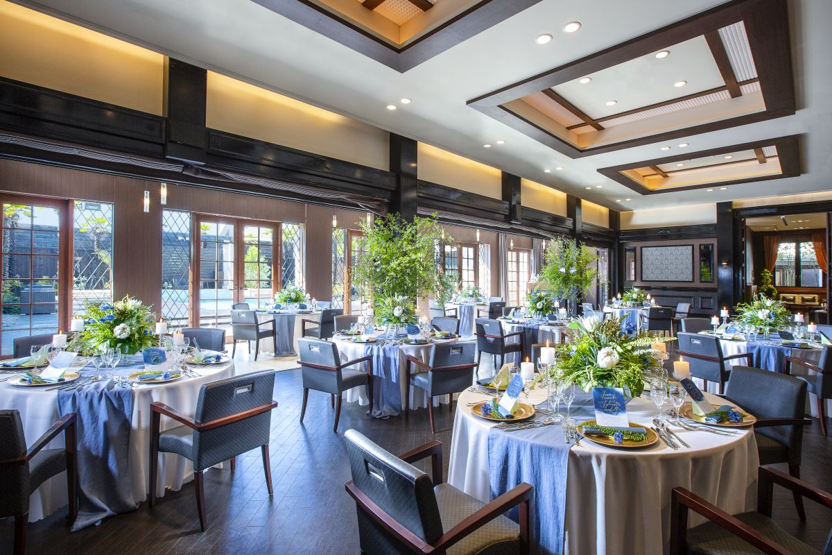貸切で広々使えるプール付きのガーデンは海外ウエディングの様なスタイルが人気の会場です。