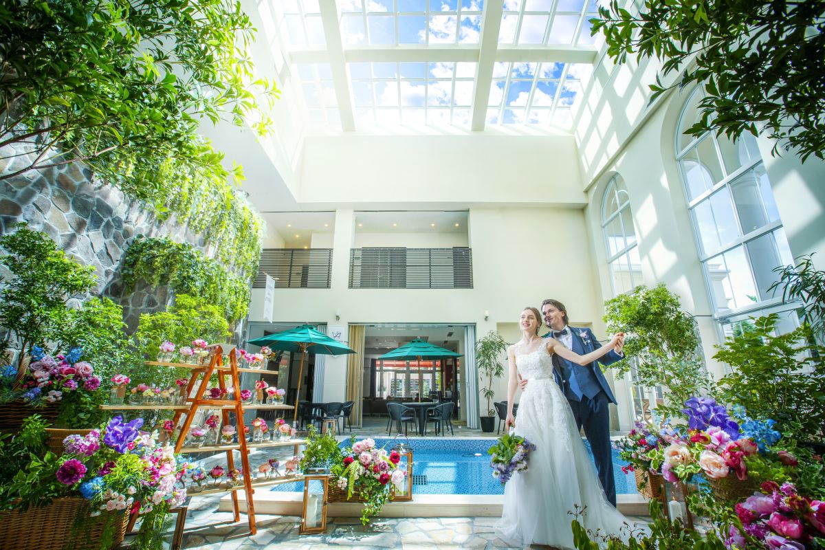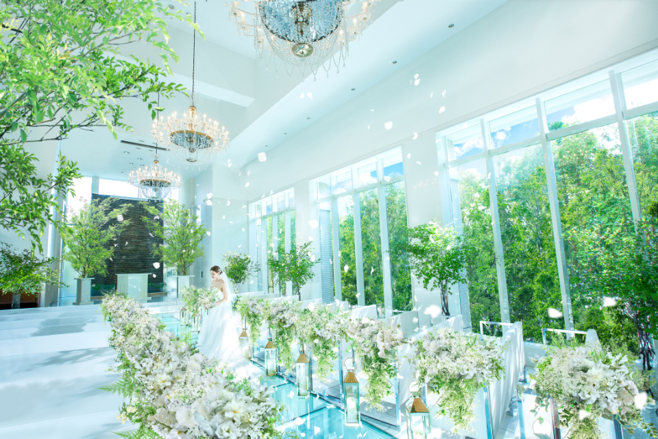 〈光×水×緑〉ガラスのバージンロードが特徴の独立型チャペル