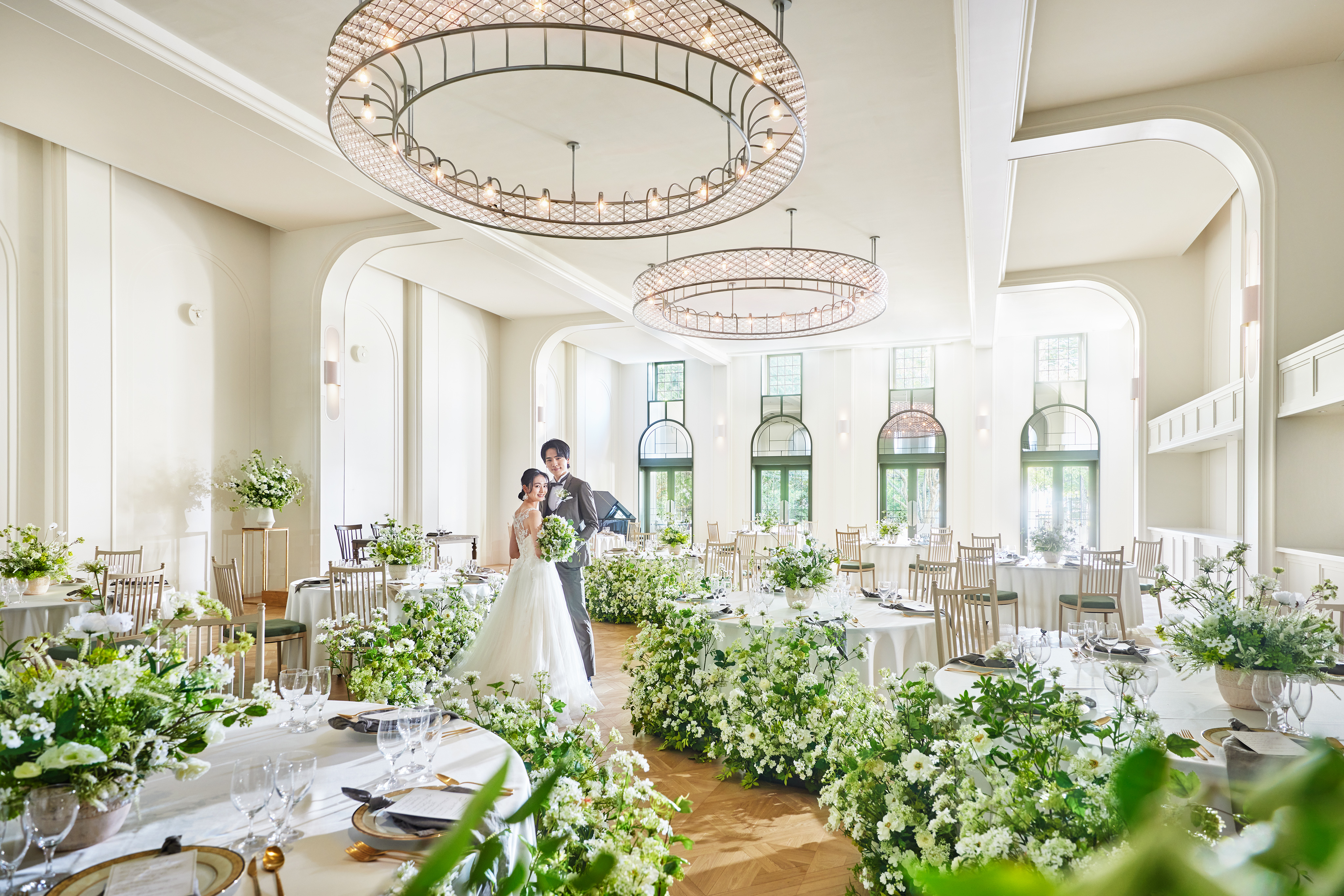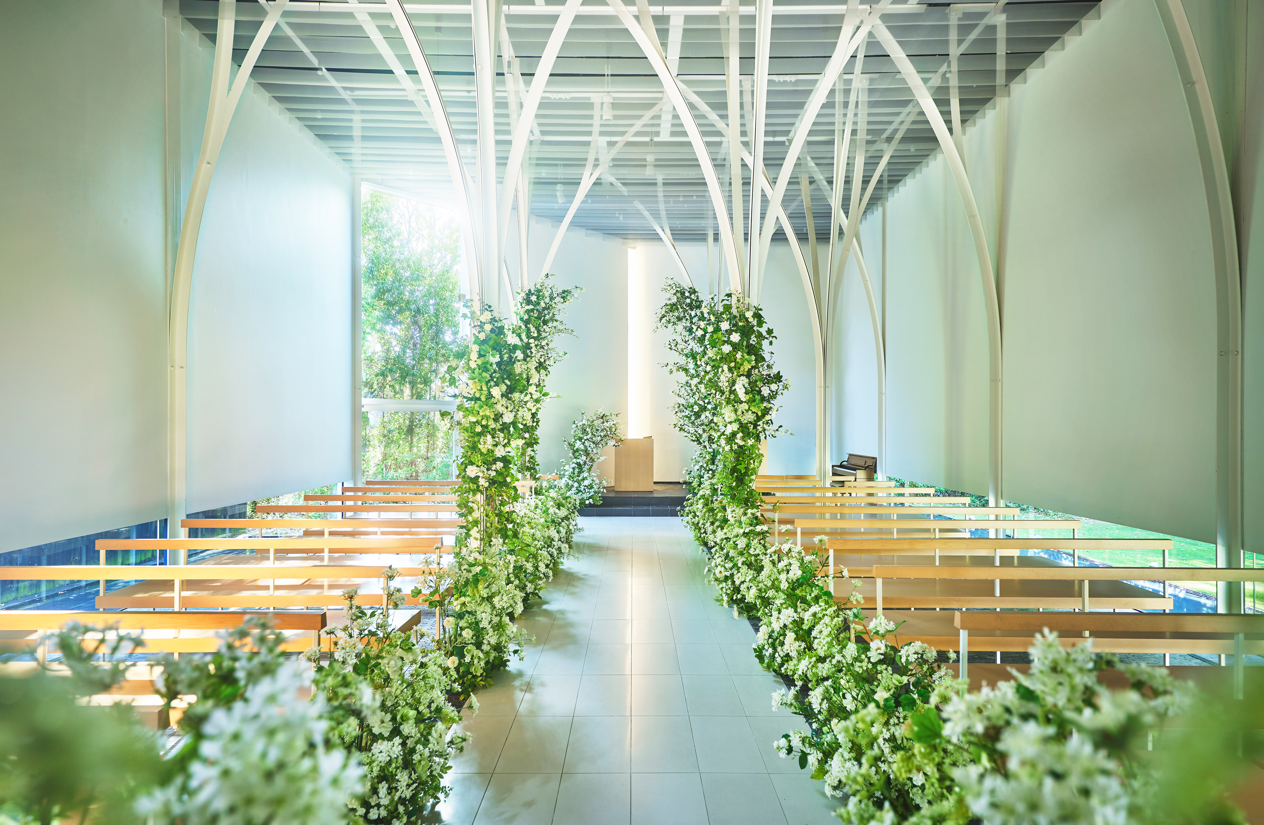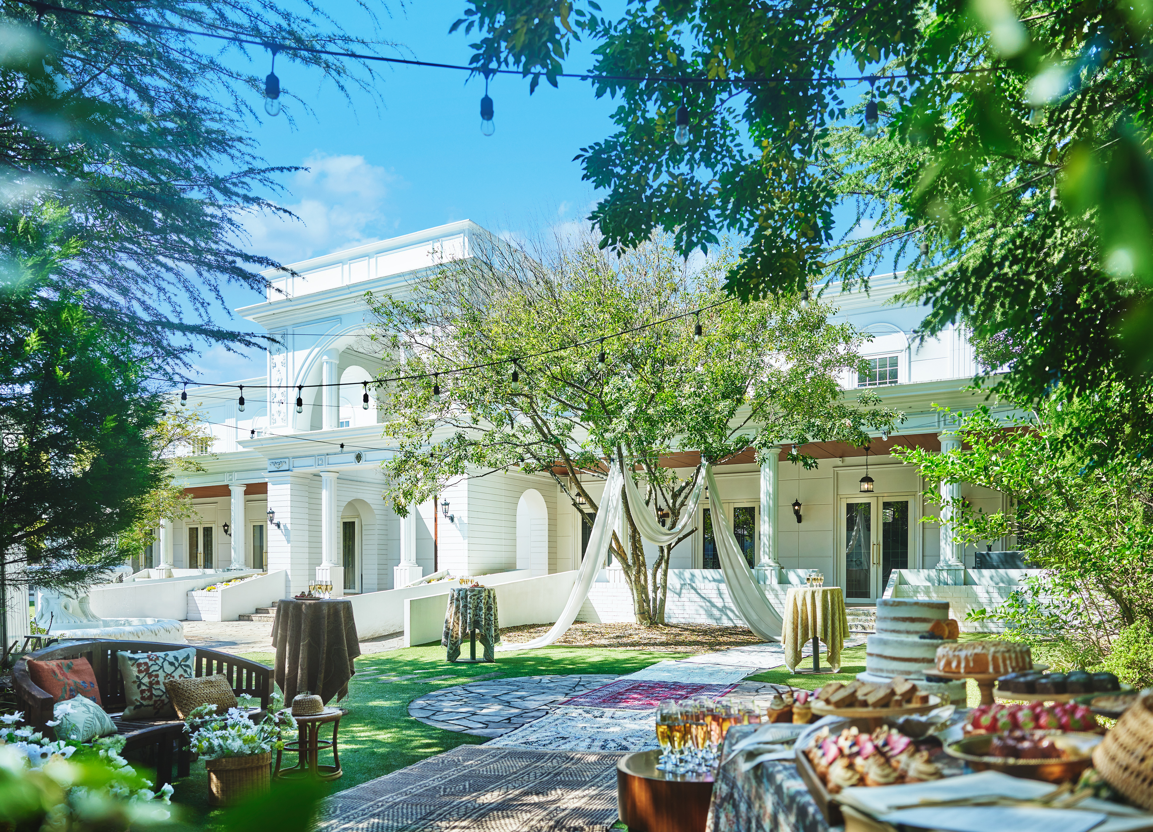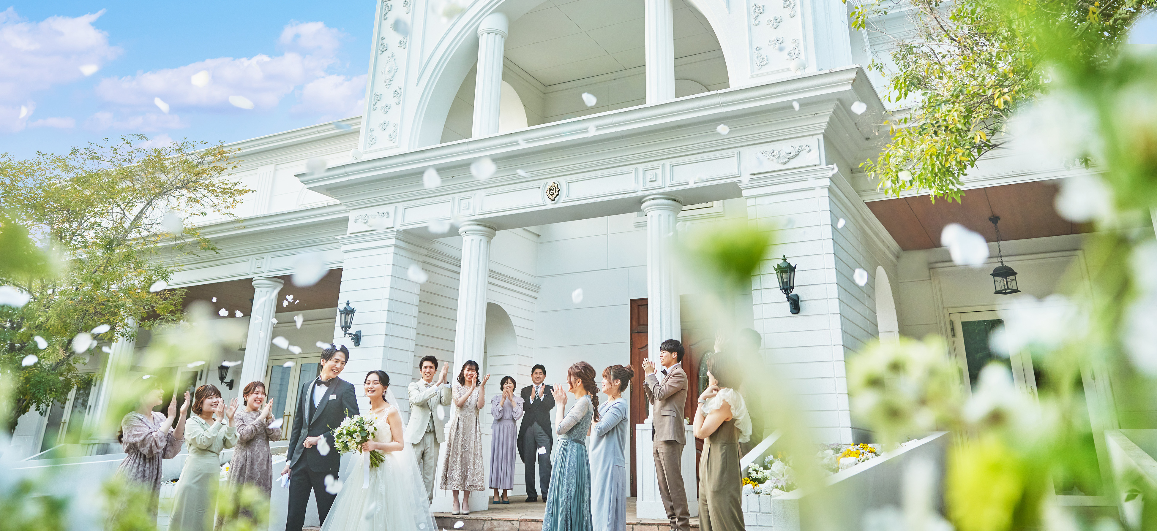 芸術美にきらめく白亜のチャペルと緑に囲まれた貸切邸宅が魅力です。