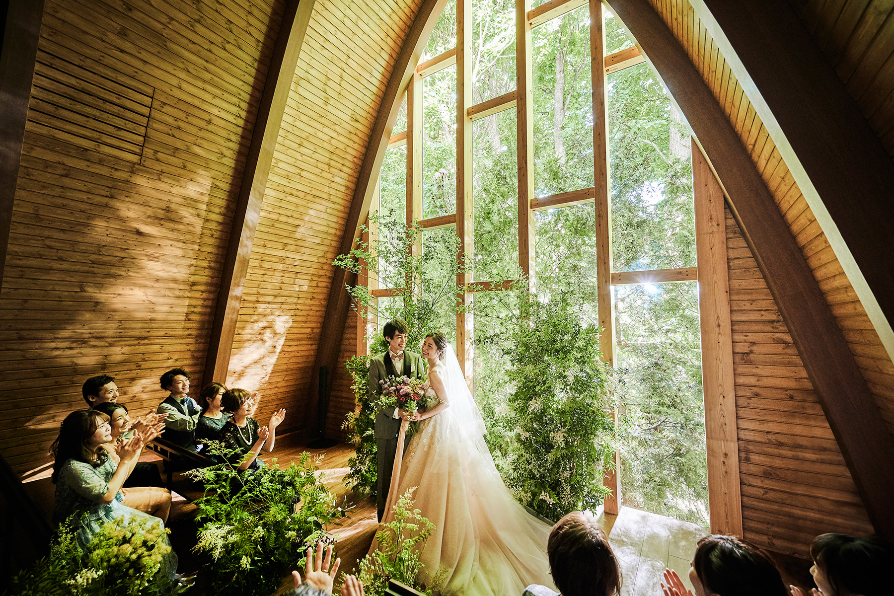 緑や自然に囲まれた陽光が注ぐ森のチャペル