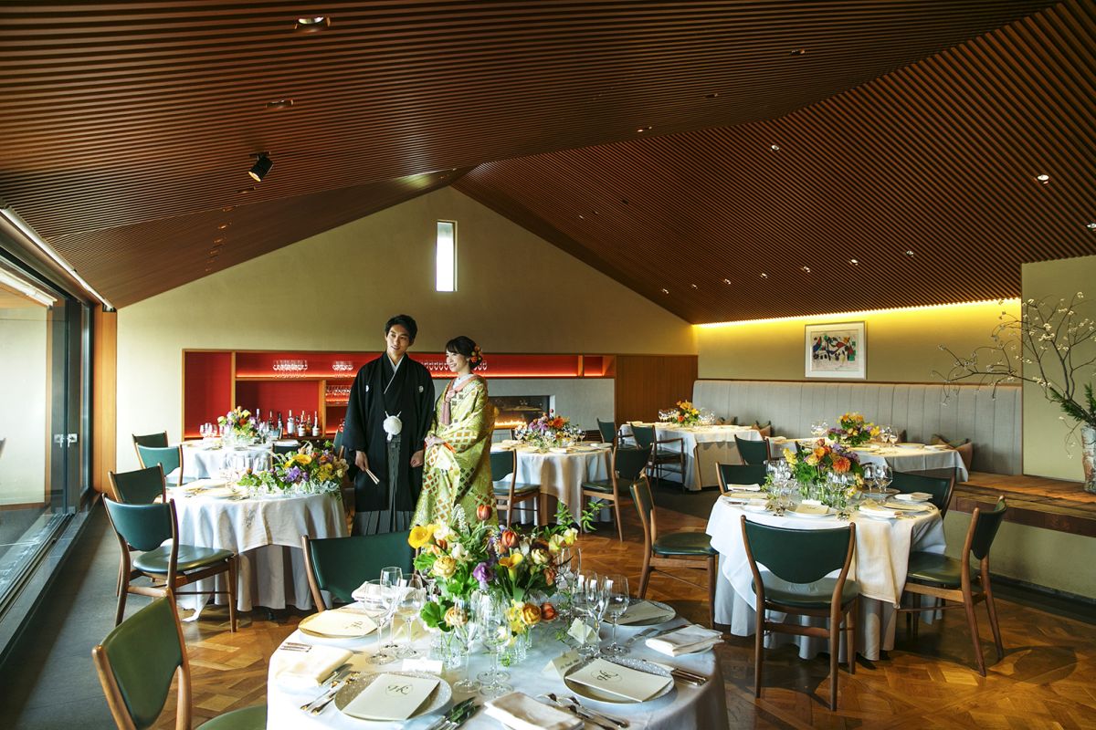 八坂の塔をはじめ京都の街並みを見渡せる贅沢なロケーションと、確かな実力を誇る正統派フランス料理で最良のおもてなしを。絵画や調度品を設えた美術館のような空間は、洗練された上質なウェディングを叶えます。
