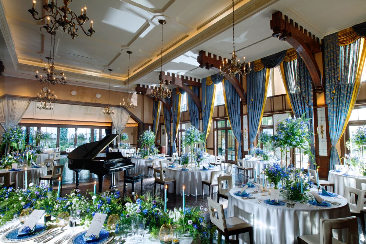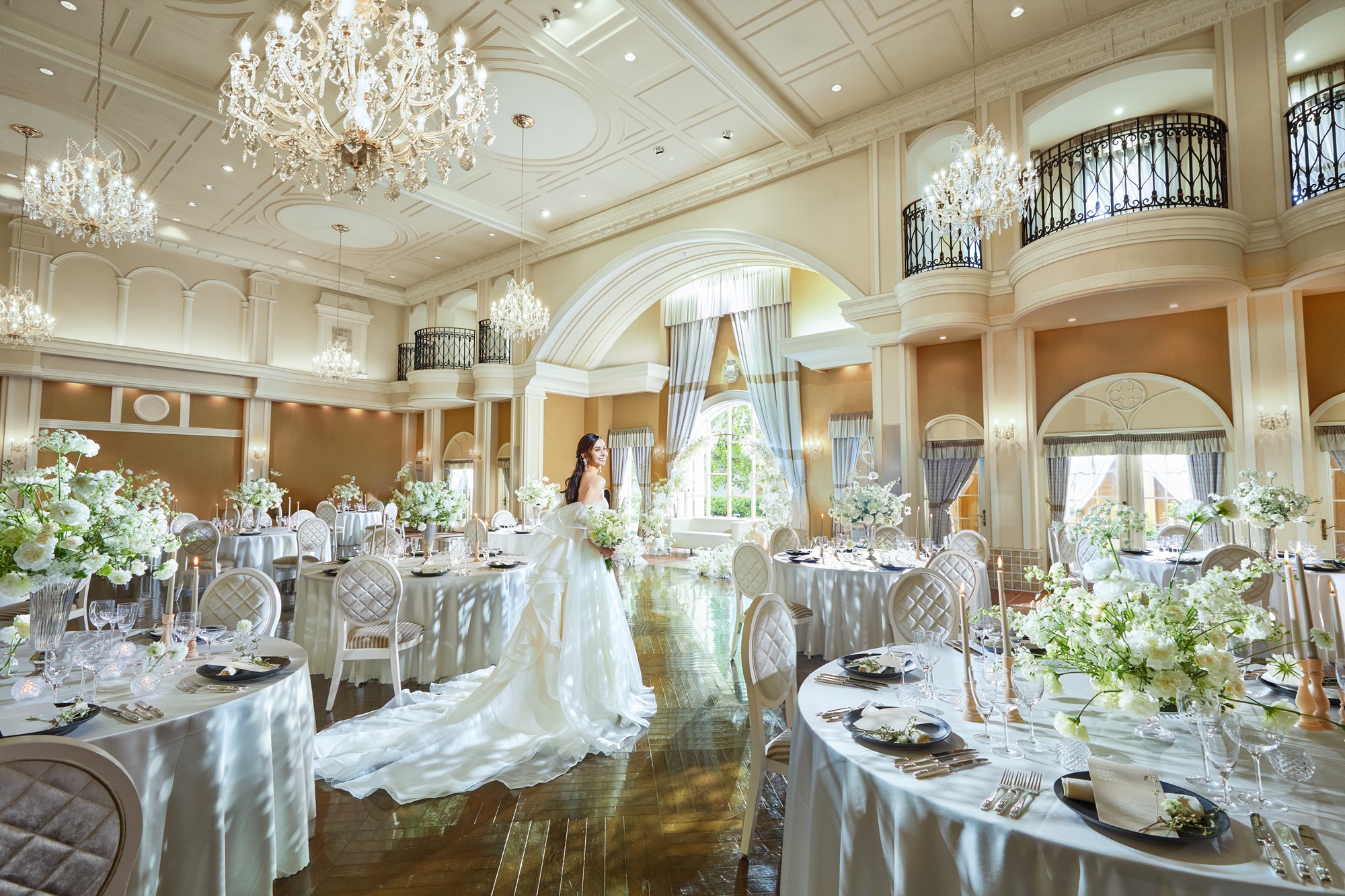 天井高17mの荘厳な大聖堂と、美術館のように洗練された上質空間。全天候型ガーデン付きで、四季を問わず映える演出が叶います。