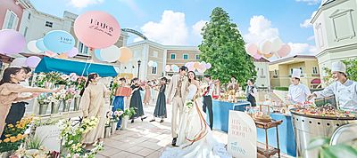 結婚式に列席するゲストが利用できるジェラートワゴンやカフェなど。おもてなしに溢れた街並みが広がります。