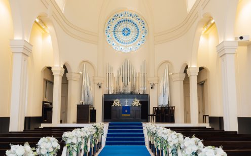 ロイヤルブルーのバージンロードで想い出に残る感動挙式