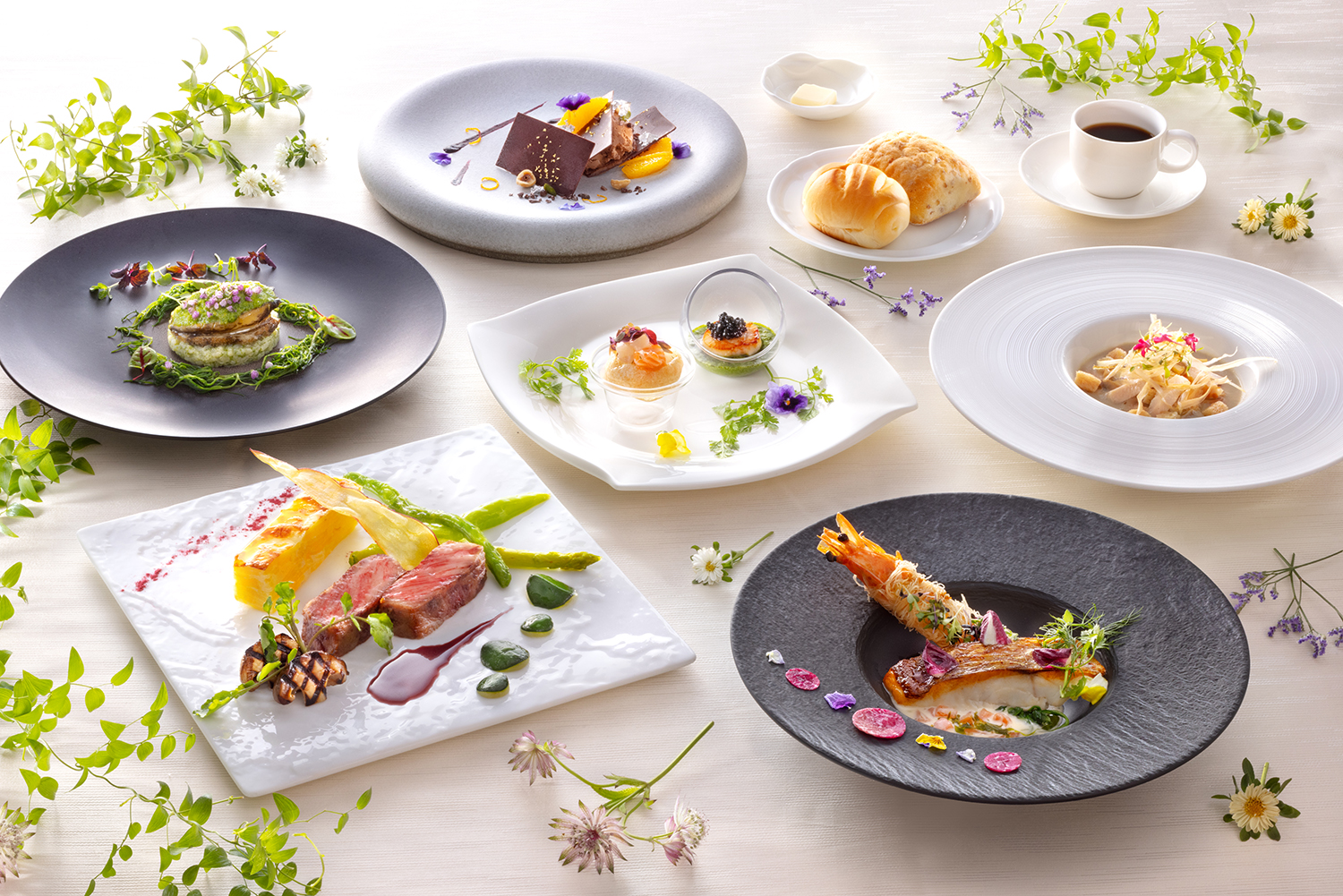 季節によって変わる旬の食材と、おふたりの好みをお聞きして創り出すオリジナルコース料理。「おふたりの大切なゲストに美味しく召し上がっていただきたい」という気持ちを込めて、最高の一日に充実のおもてなしを提供します。