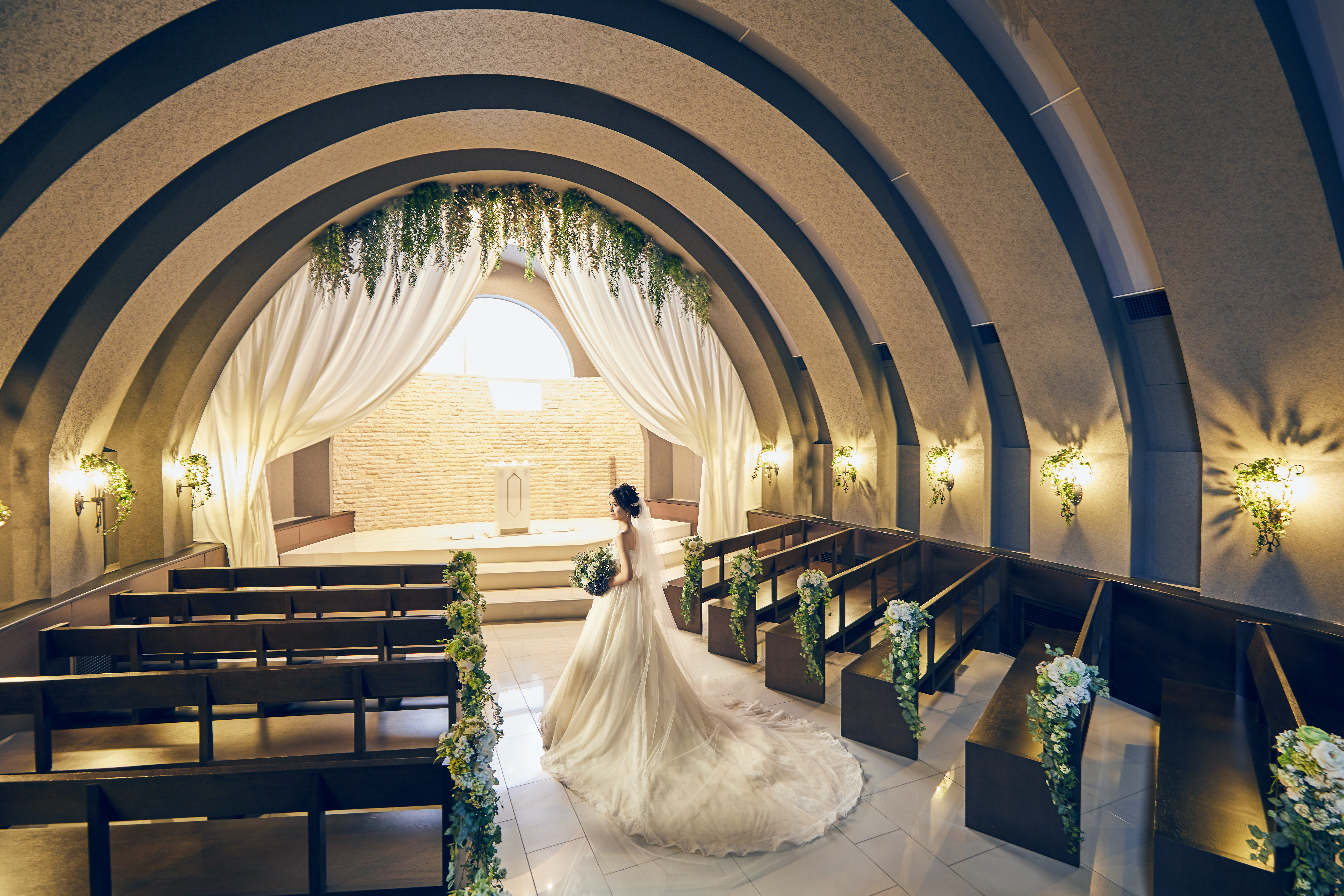 天井から優しい光が注ぎ込むチャペルは感謝も愛情も喜びもせつなさも全てを内包する場所です。そしてこれからのすべてがここから始まります。