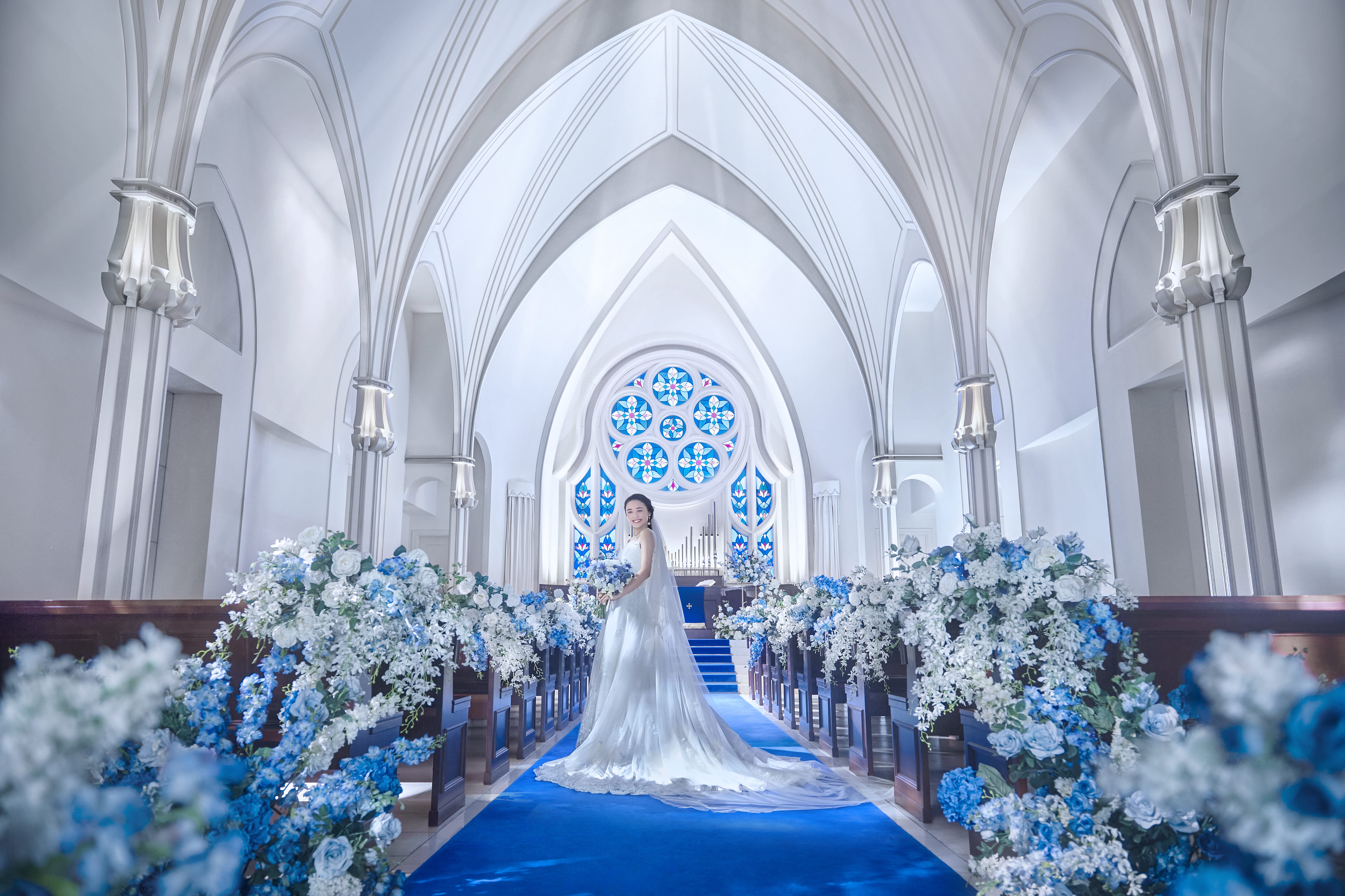 青く輝くバージンロードに「永遠」の幸せを誓う感動の挙式