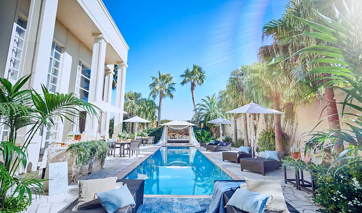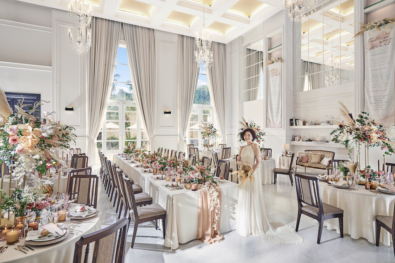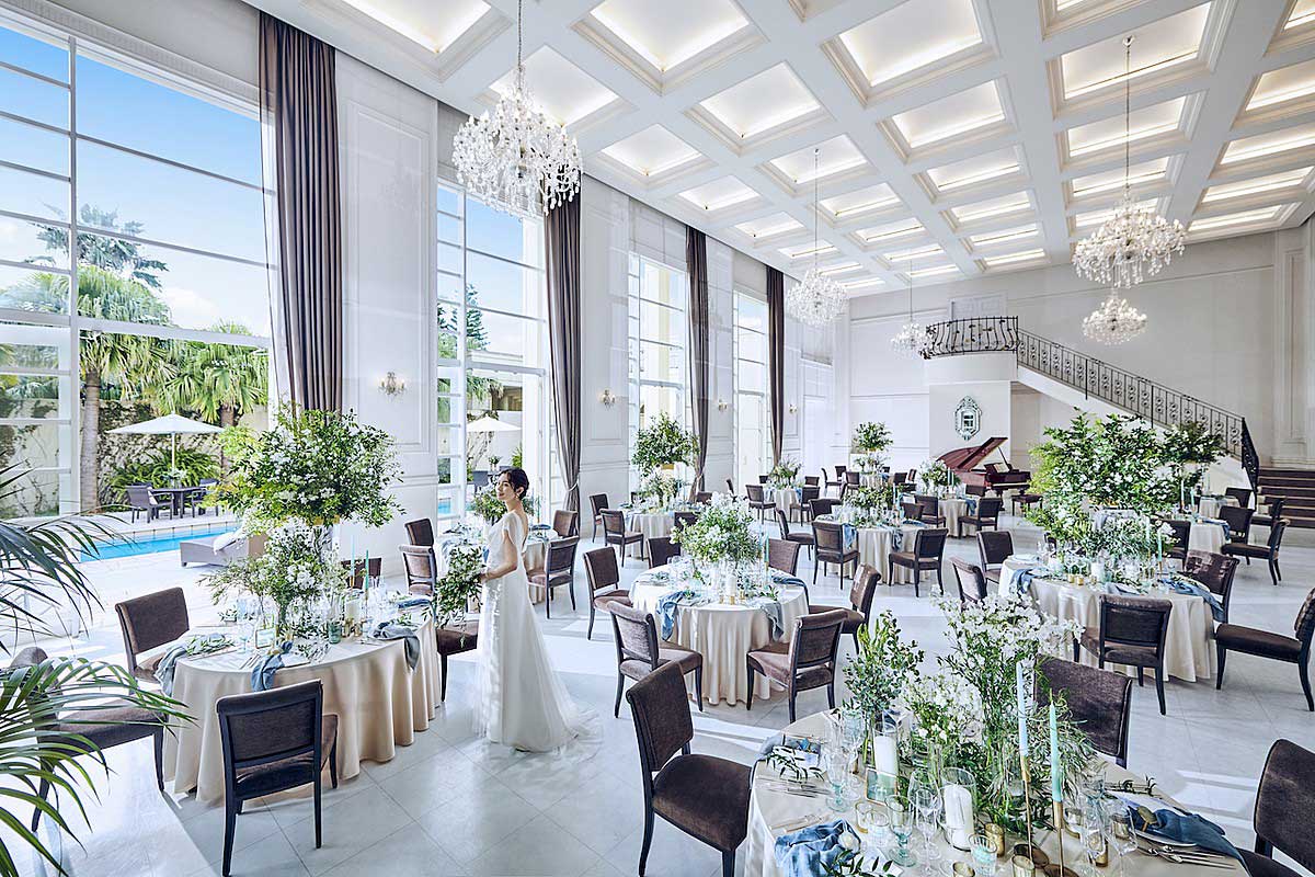 広いプール付きガーデンがあり、自然に囲まれてゲストと一緒にカジュアルで2人らしいパーティーが叶います。