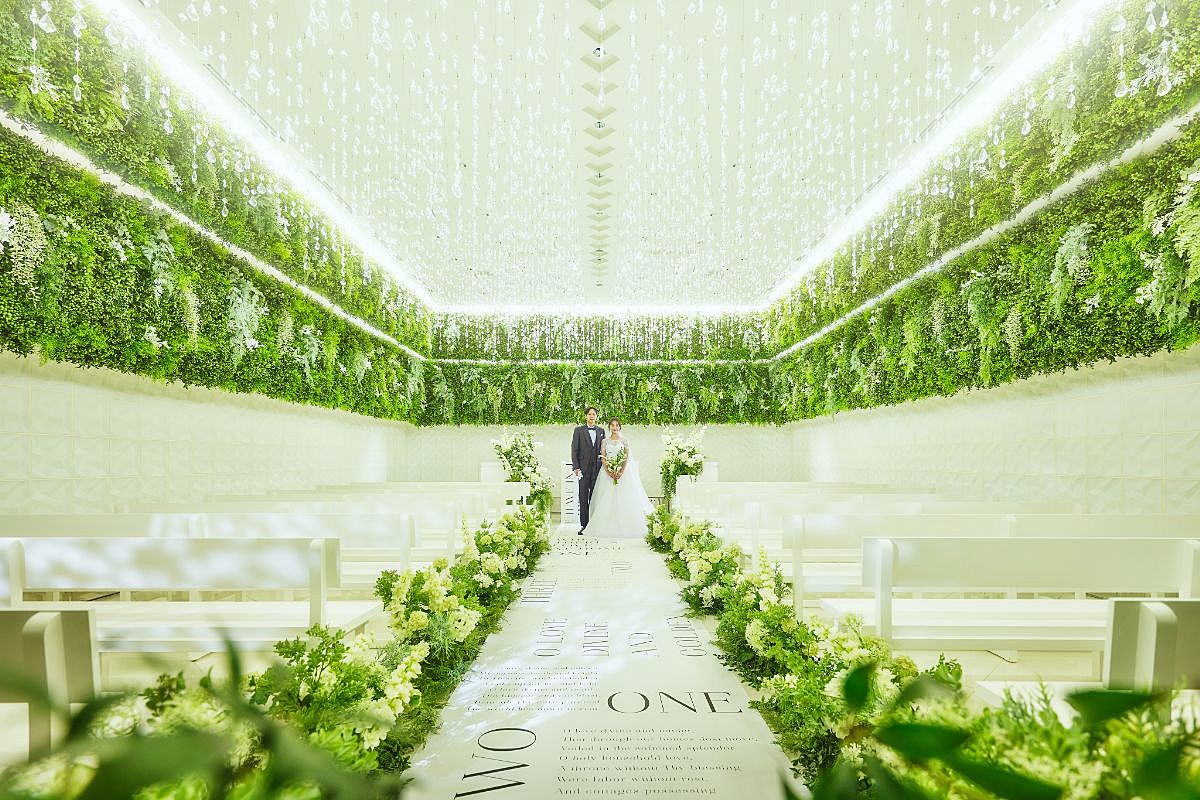 緑に見守られ、祝福が溢れるチャペルで優しい光に包まれた挙式を