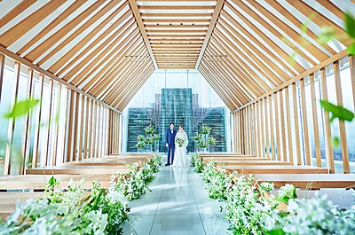 木のぬくもりと柔らかな光、水がきらめく独立型のチャペルでリニューアルで魅力アップ!