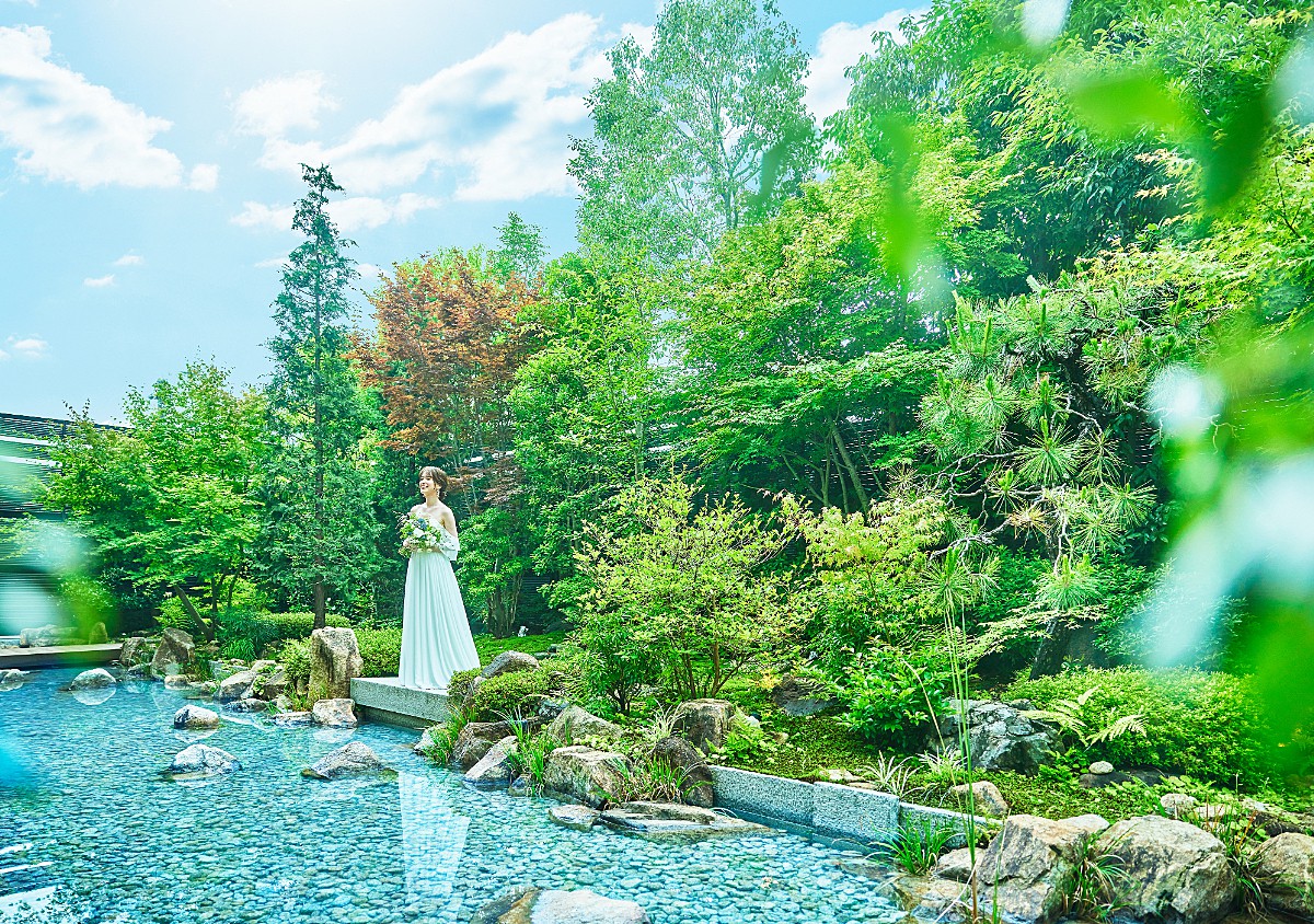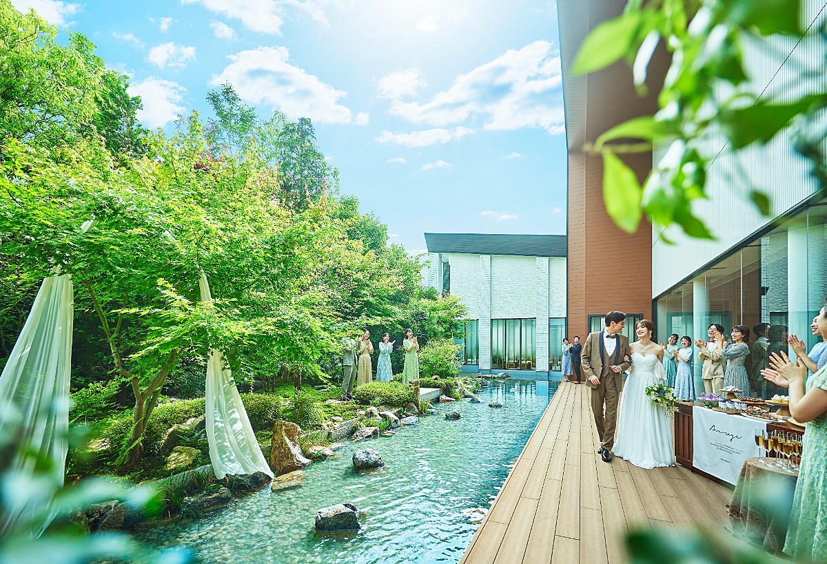 ガーデン×滝と木のぬくもりを感じられる独立型チャペルを貸切にした邸宅ウエディング