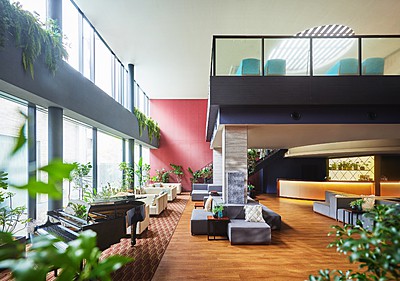 2フロア分の開放的なパーティー会場は自然光がたっぷりと降り注ぐ