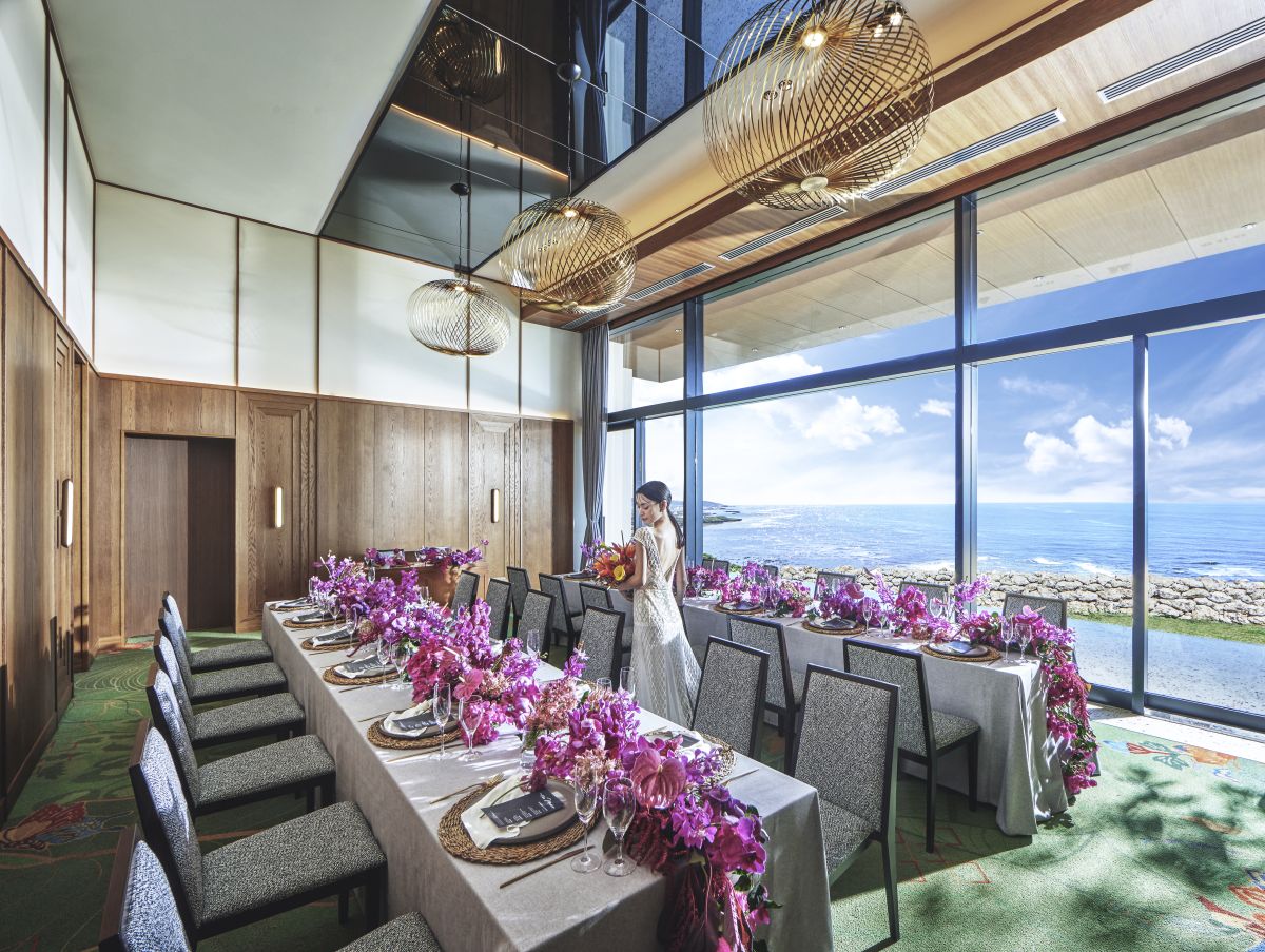 180度以上のパノラマを臨む高台に位置したサザンチャペルでは、太平洋の雄大な景色、周囲の美しい森やグリーン、吹き抜ける潮風の爽快感、海・緑・風・空が織りなす唯一無二の美景を愉しむことができます。