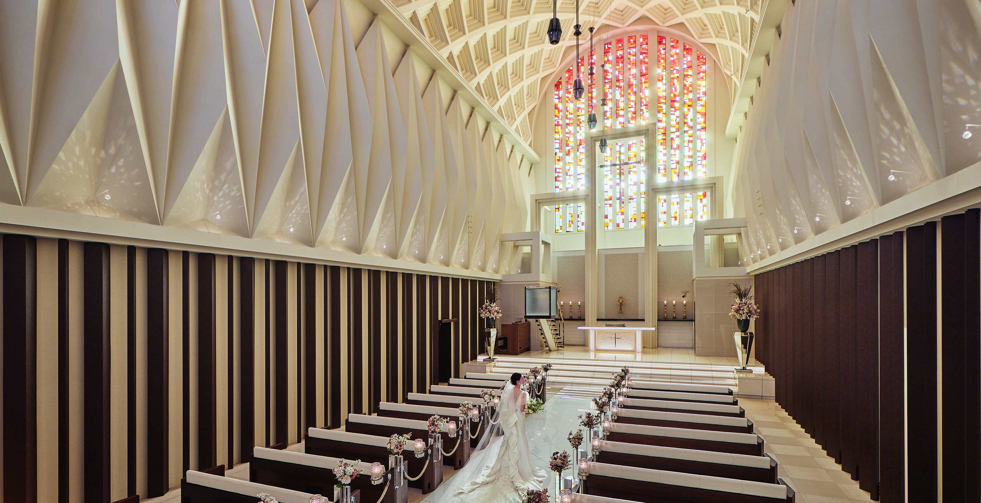 天井高17m、バージンロード22mのエリア最大級を誇る大聖堂