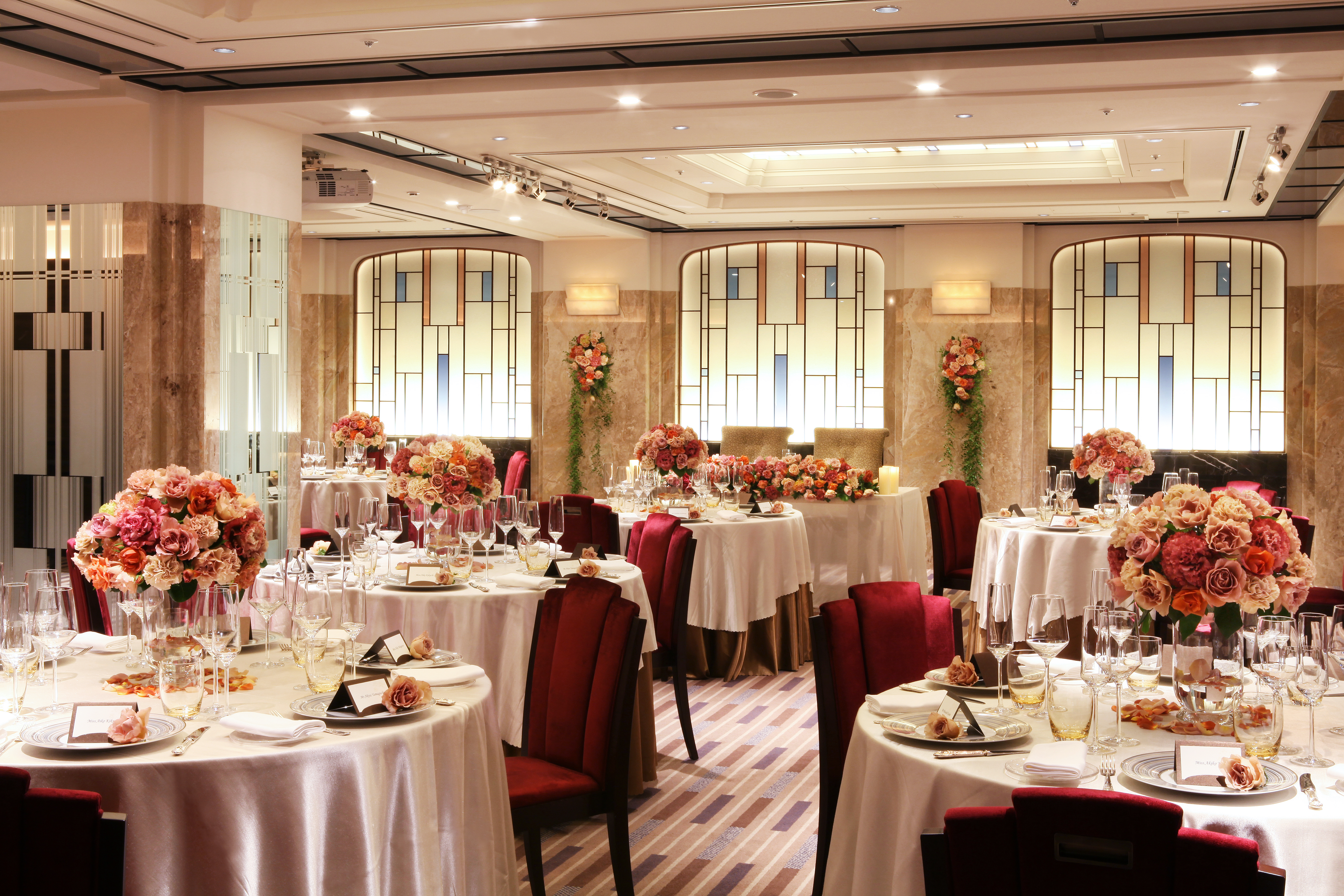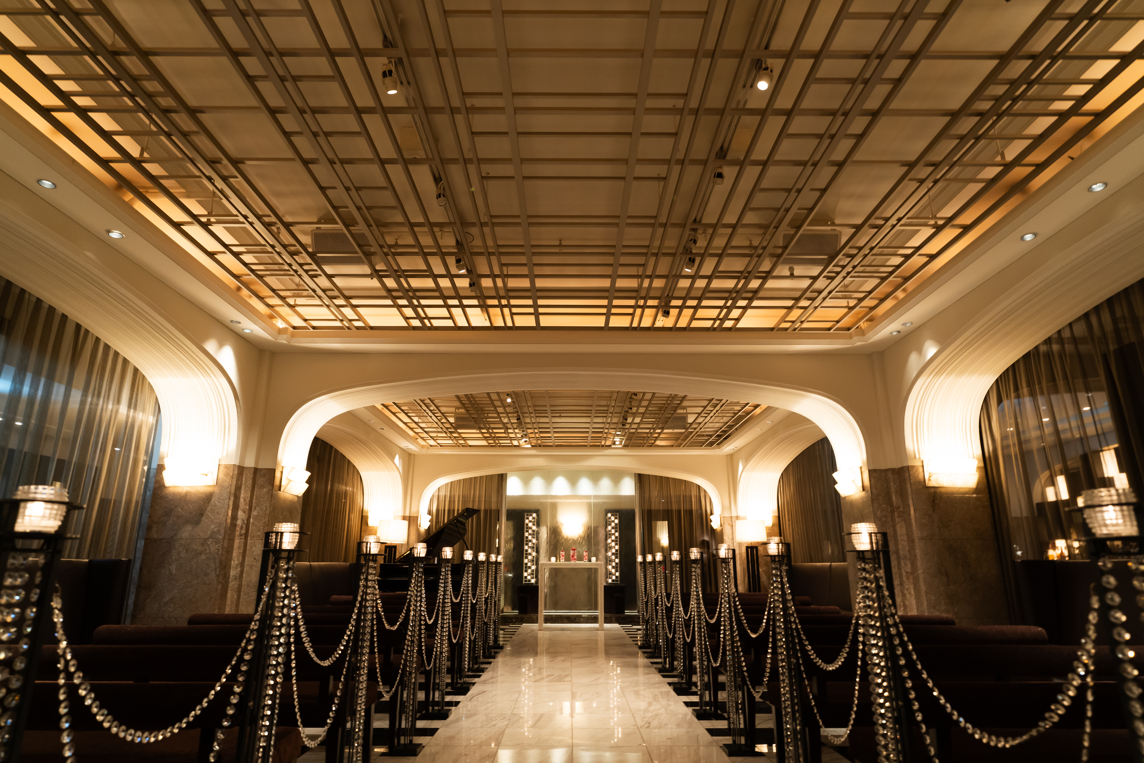 重要文化財の美しい内装を活かし、アールデコ様式のデザインとコラボレートした披露宴会場“アカンサス”