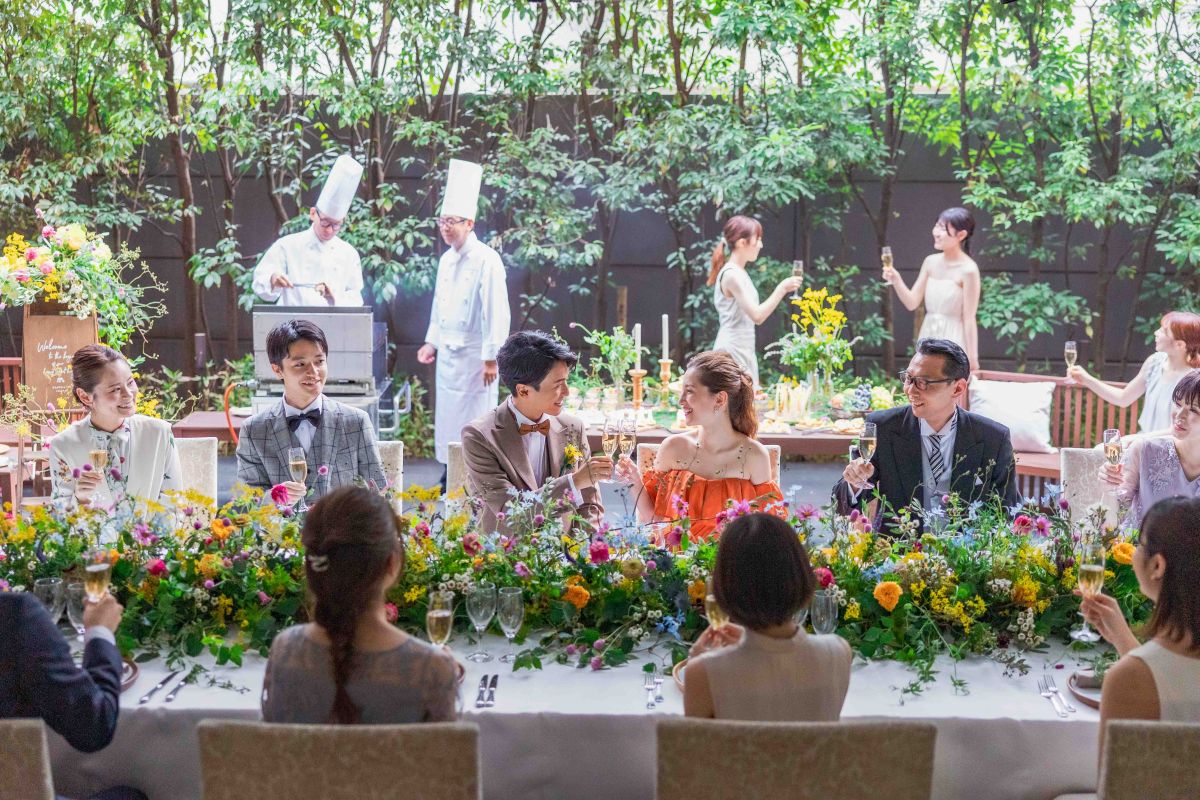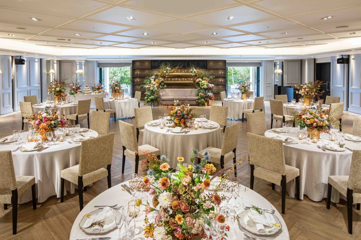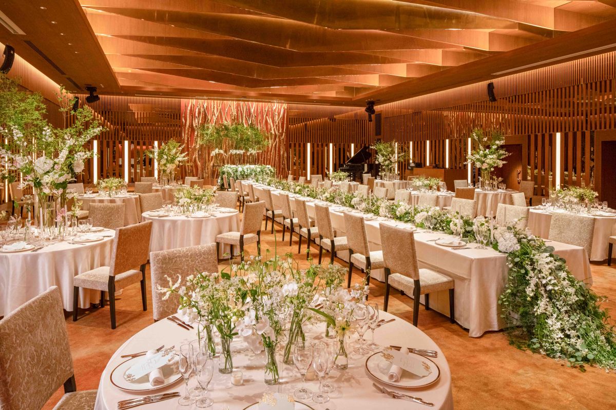 それぞれに趣向を凝らした 3つのバンケットをご用意。 空間コーディネートもフラワーデコレーションも自由自在に、ゲストやご家族がふたりを身近に感じるレセプションをかたちにします。