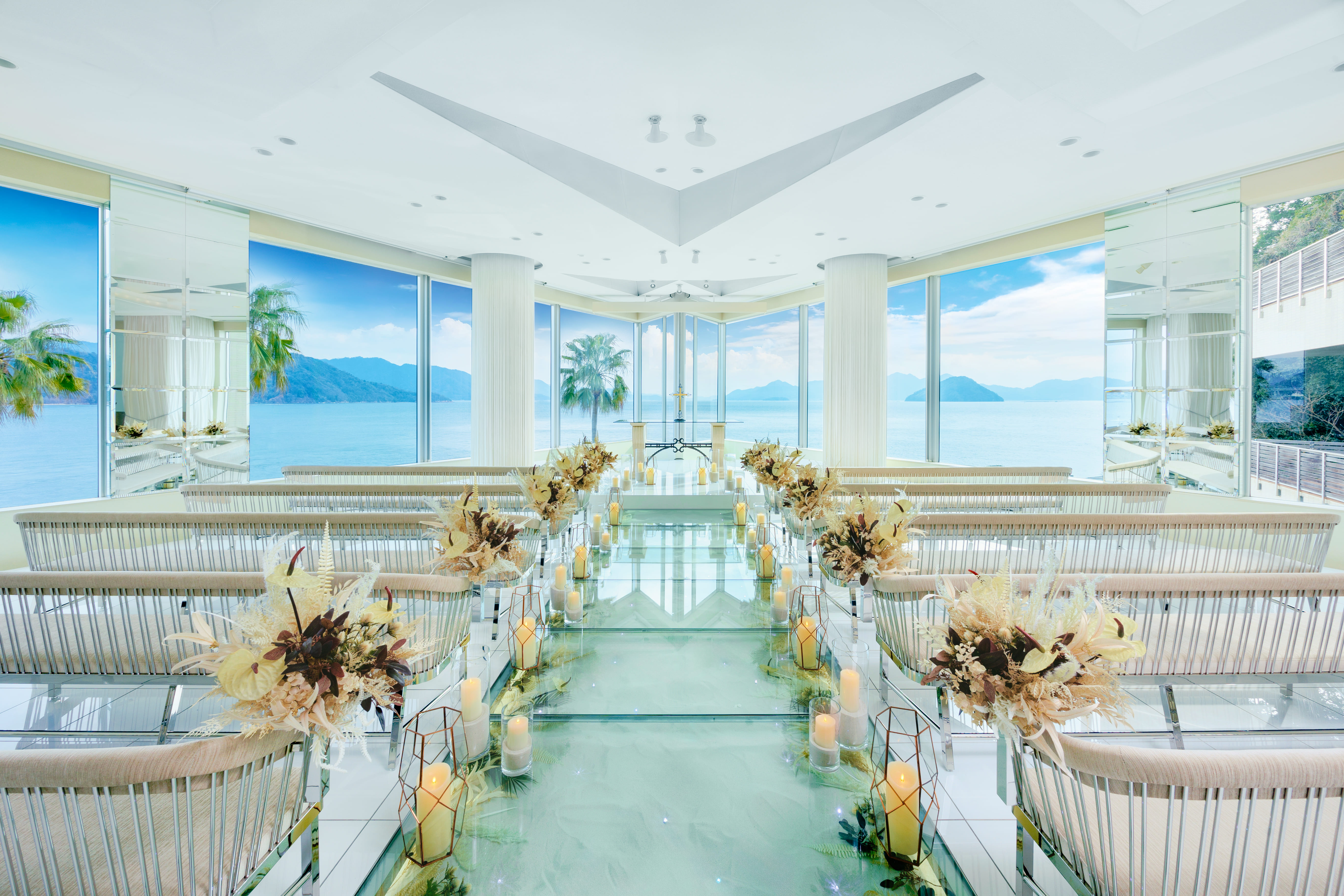 瀬戸内の絶景を臨むチャペルや木目に囲まれた貸切邸宅チャペル