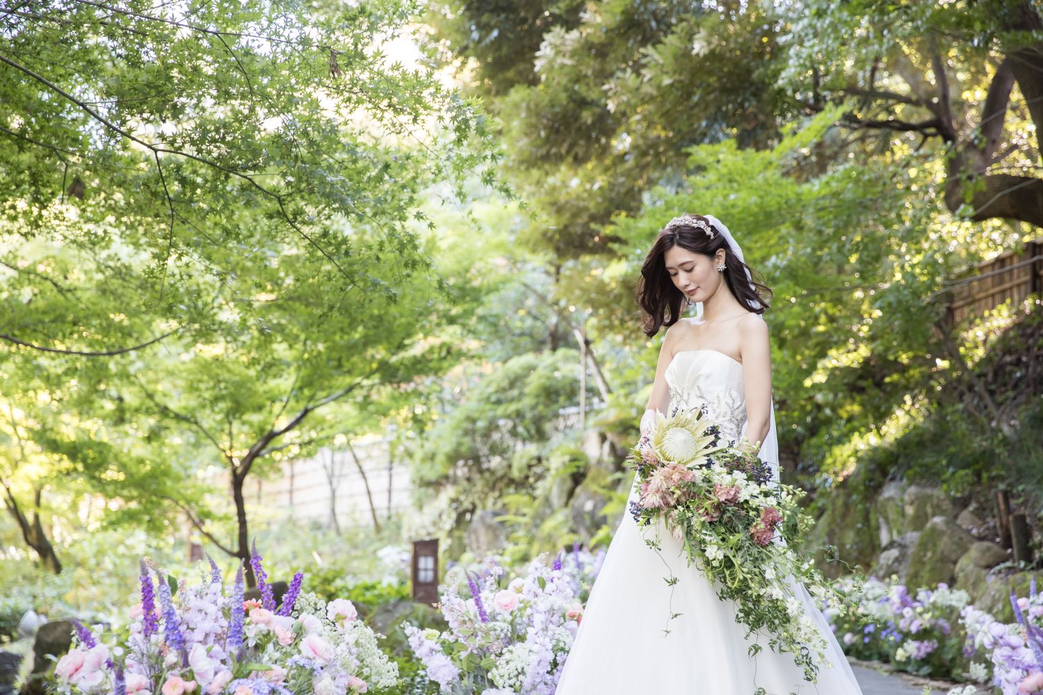 エントランスをくぐると、そこは名古屋市内とは思えない非日常な空間が広がっている。四季折々愉しめる日本庭園は、披露宴当日の散策はもちろん、前撮りなどの撮影スポットとして、先輩カップルからも大人気の空間。