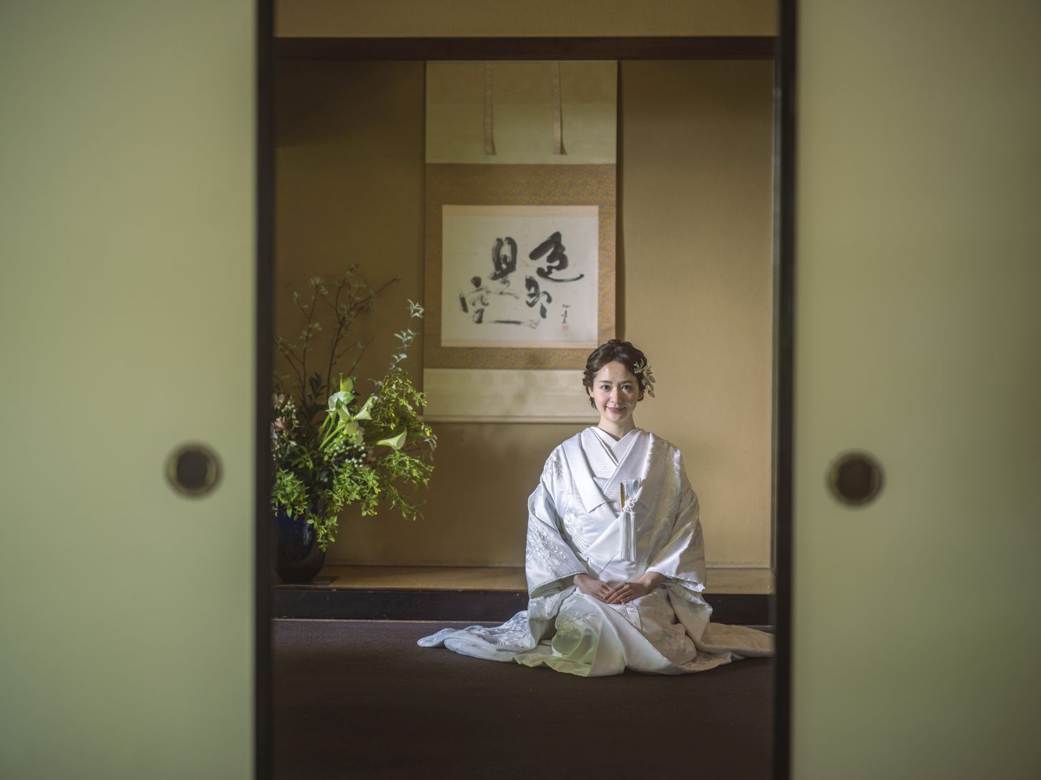 歴史ある文化遺産や日本庭園は白無垢や上質な色打掛がとても映える空間。会場は和の中にもモダンな洋の雰囲気も兼ね備え、ドレス姿も楽しむことができる。