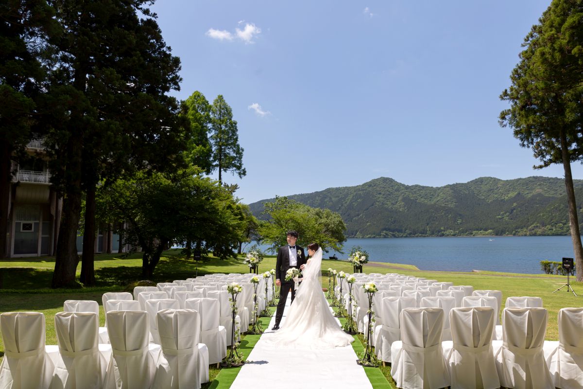 この先変わることのない景色と箱根の自然に調和した荘厳な建築物がおふたりの永遠の愛を祝福します。