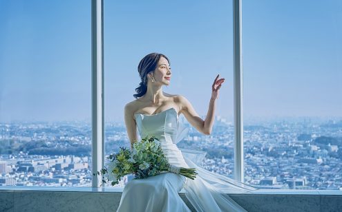 見渡す限りの青い空と白い雲。壮大な景観で大切なゲストをおもてなし。窓の外に広がる空に囲まれて、理想のウエディングを叶えてください。