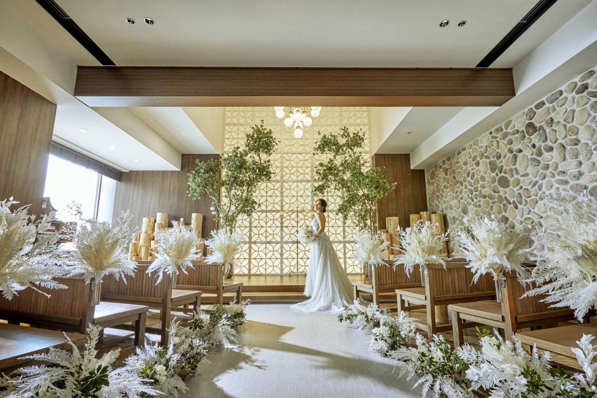おふたりの誓いの時間が思い出深く、おふたりにとってもゲストにとっても特別なものに。感動と笑顔があたたかく包まれる幻想的なチャペルは印象的です。