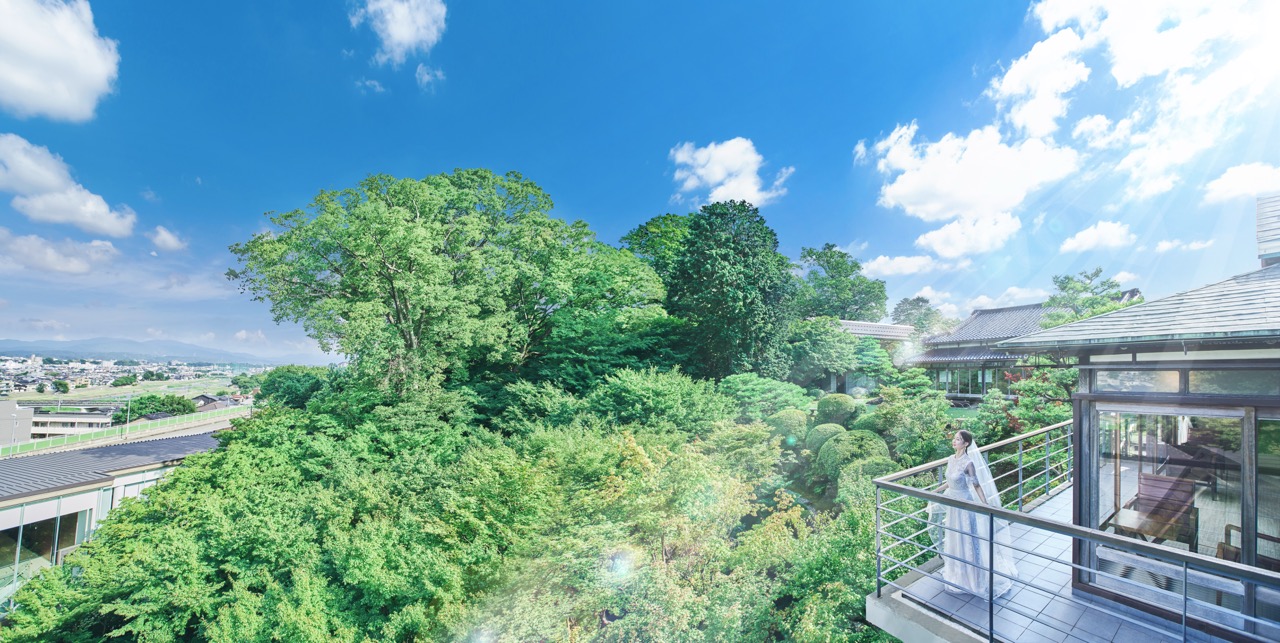 曇りや雨の日が多い金沢で、ゲスト楽しませたいというおもてなし文化の表れとも言われ、白無垢や色打掛はもちろん、真っ白なウエディングドレスでも美しい一枚が残せることも人気の秘密です。
