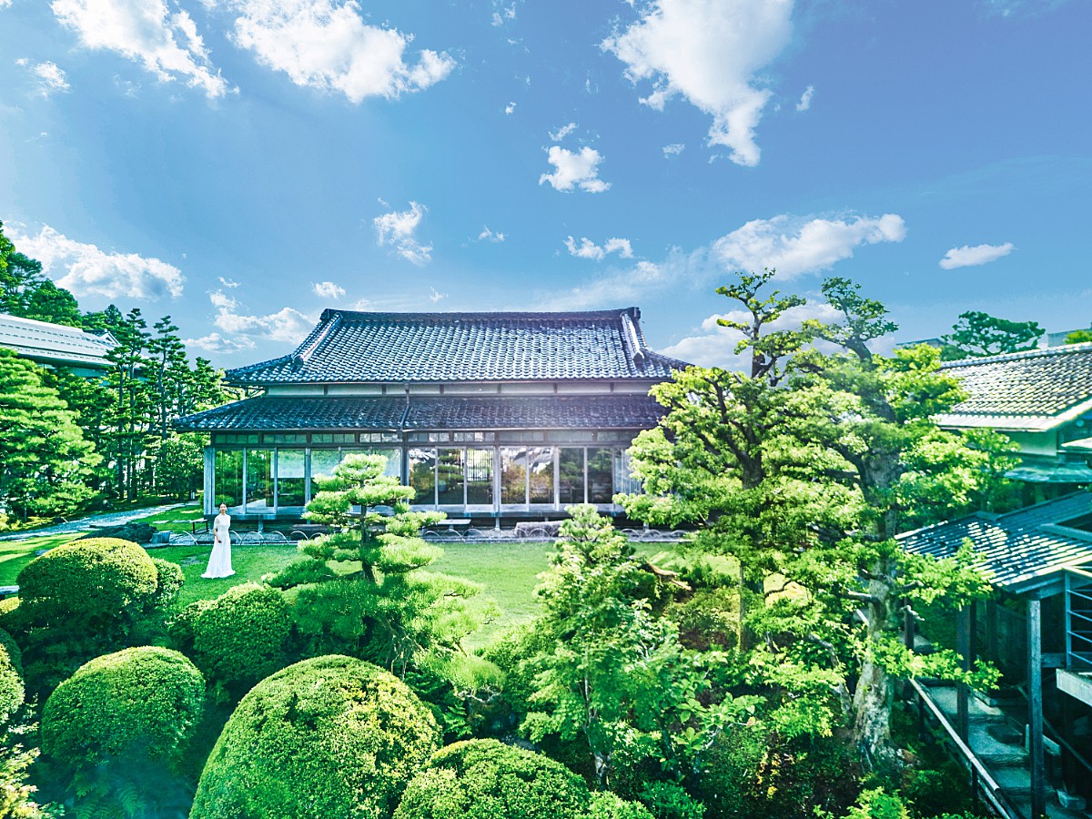 当時全国の名所にある庭の剪定を手掛けていた、高名な庭師を京都から呼び寄せ造った庭園が広がっています。長い間、金沢という街を見守ってきた歴史ある場所で一生忘れられないハレの日を迎えることが出来ます。