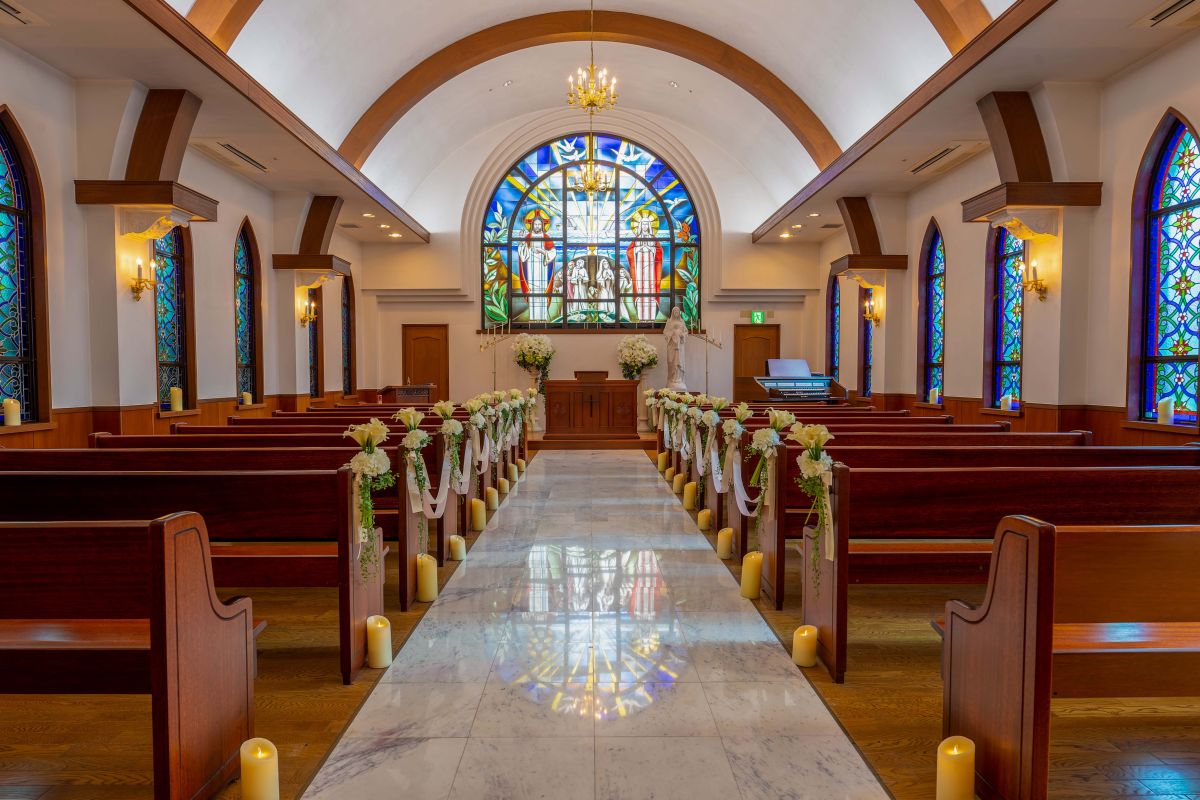 三百年の歴史が息づく岡山後楽園で、四季折々の美しさに抱かれながらの結婚式。館内神殿に祀らわれているのは二千年の歴史を持つ由緒ある伊勢神社の御祭神です。チャペルはヨーロッパの小さな教会のような木のぬくもりと自然光に満ちた神聖な雰囲気が魅力です。