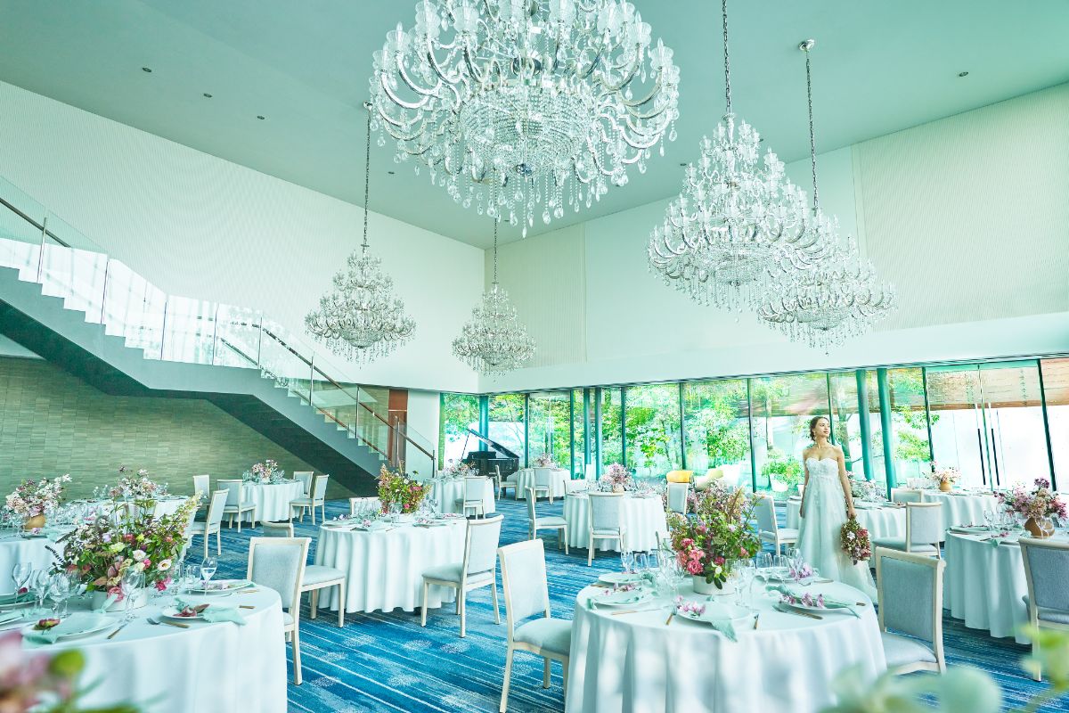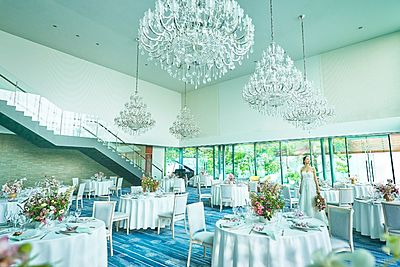 テラス付きシャンデリア煌めくパーティ会場