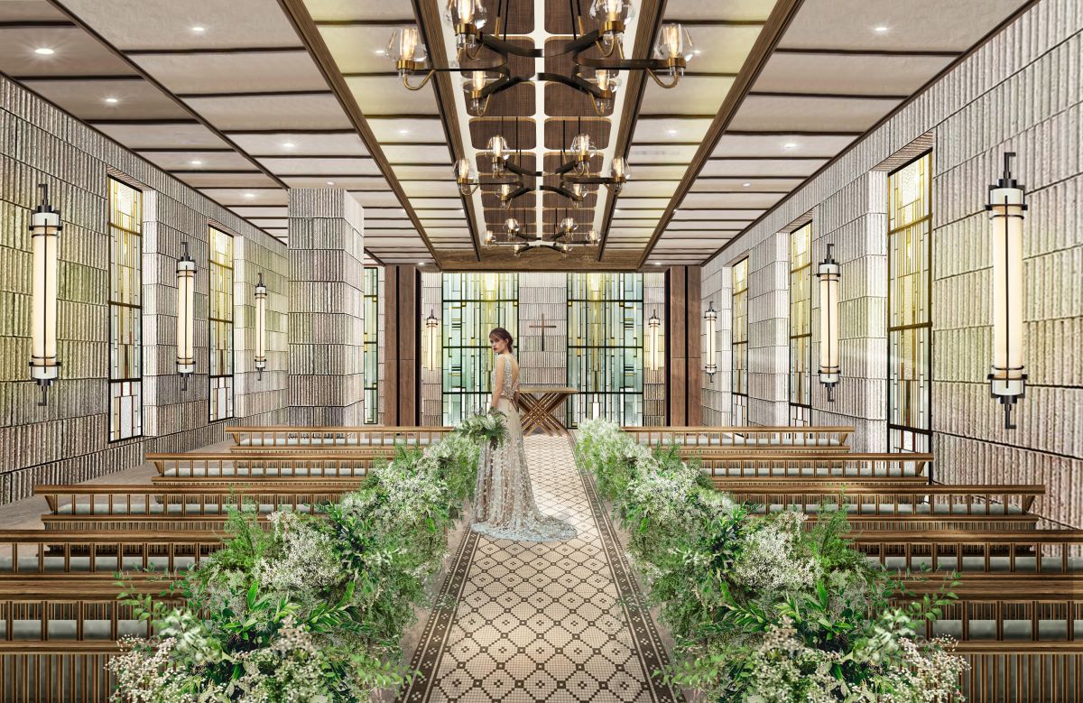 祭壇の奥から降り注ぐ自然光は開放感たっぷり。純白のステージでは真っ白な空間がおふたりの好みのコーディネートでおふたりらしく包み、自然のステージではあたたかみのある心地よい空間の中でセレモニーを彩っていきます(最大130名様着席可)