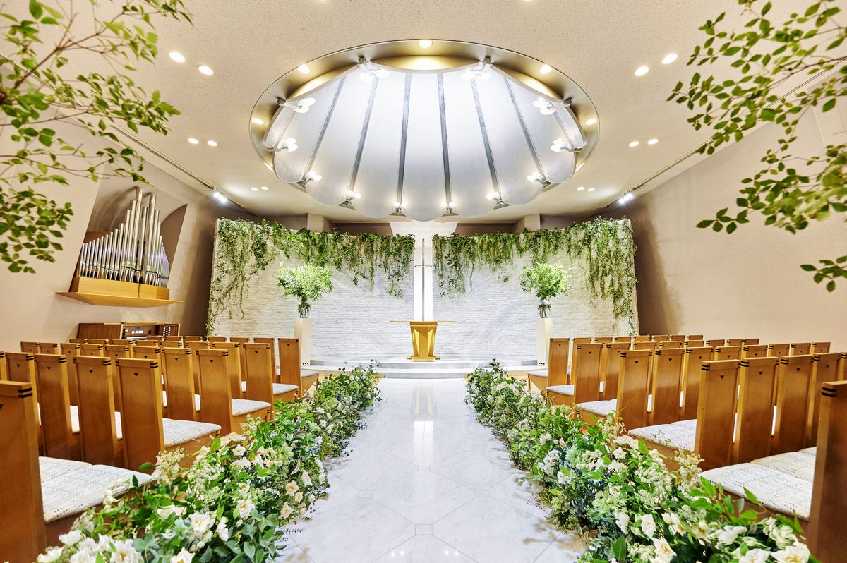 自然光降り注ぐガーデン付きチャペル×多彩な披露宴会場