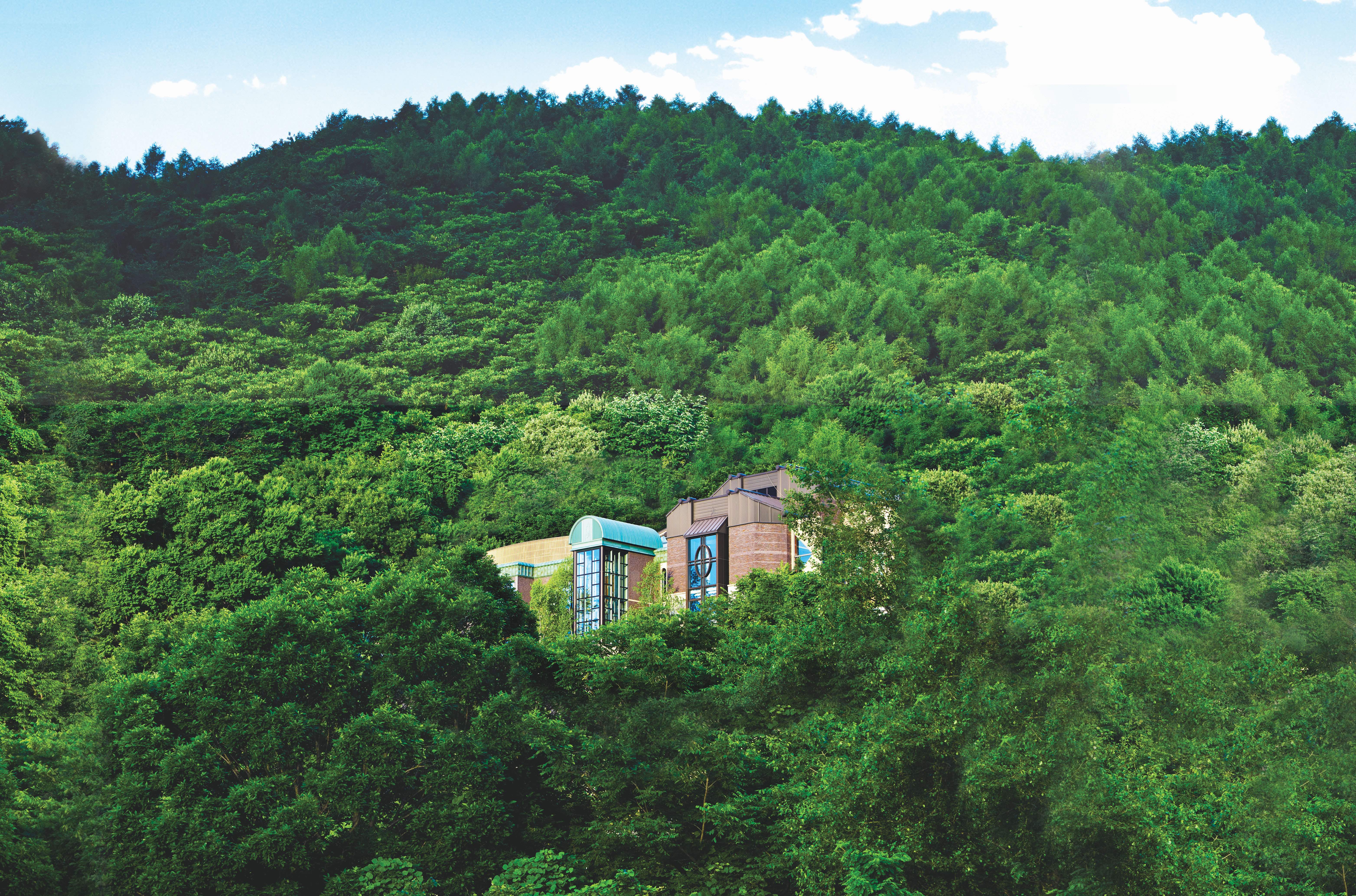 大理石のバージンロードとコバルトブルーのステンドグラスが輝く独立型教会。荘厳なチャペルでの挙式に加え、窓から自然を望む明るいパーティ会場が魅力です。