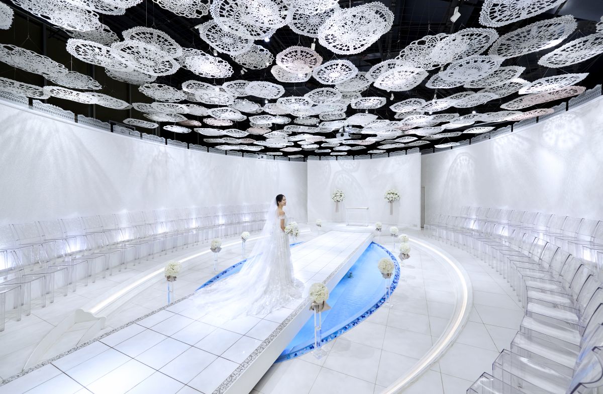 第一弾2025年3月、最上階会場が待望のオープン。幻想的なチャペルと緑豊かなガーデンチャペル、本格神殿まで挙式施設もパーティ会場も多彩に揃うホテルです。