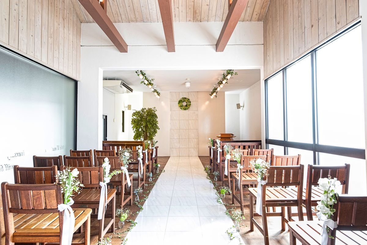 少人数にも最適な、白を基調としたアットホームなチャペル