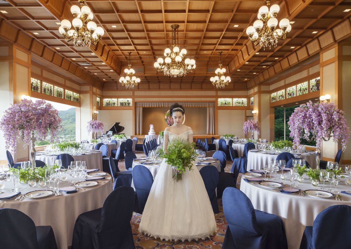 世界的に評価されたチャペルをはじめ、100年を超える歴史ある会場「葵殿」、回遊式庭園・東山の風景が一望できる会場などがあり、自然との調和・四季折々の京都を感じられる1890年創業の格式高いホテルです。