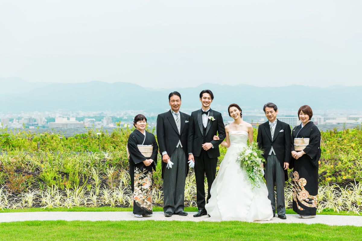 東山のロケーションに囲まれた庭園で美しい花嫁姿を