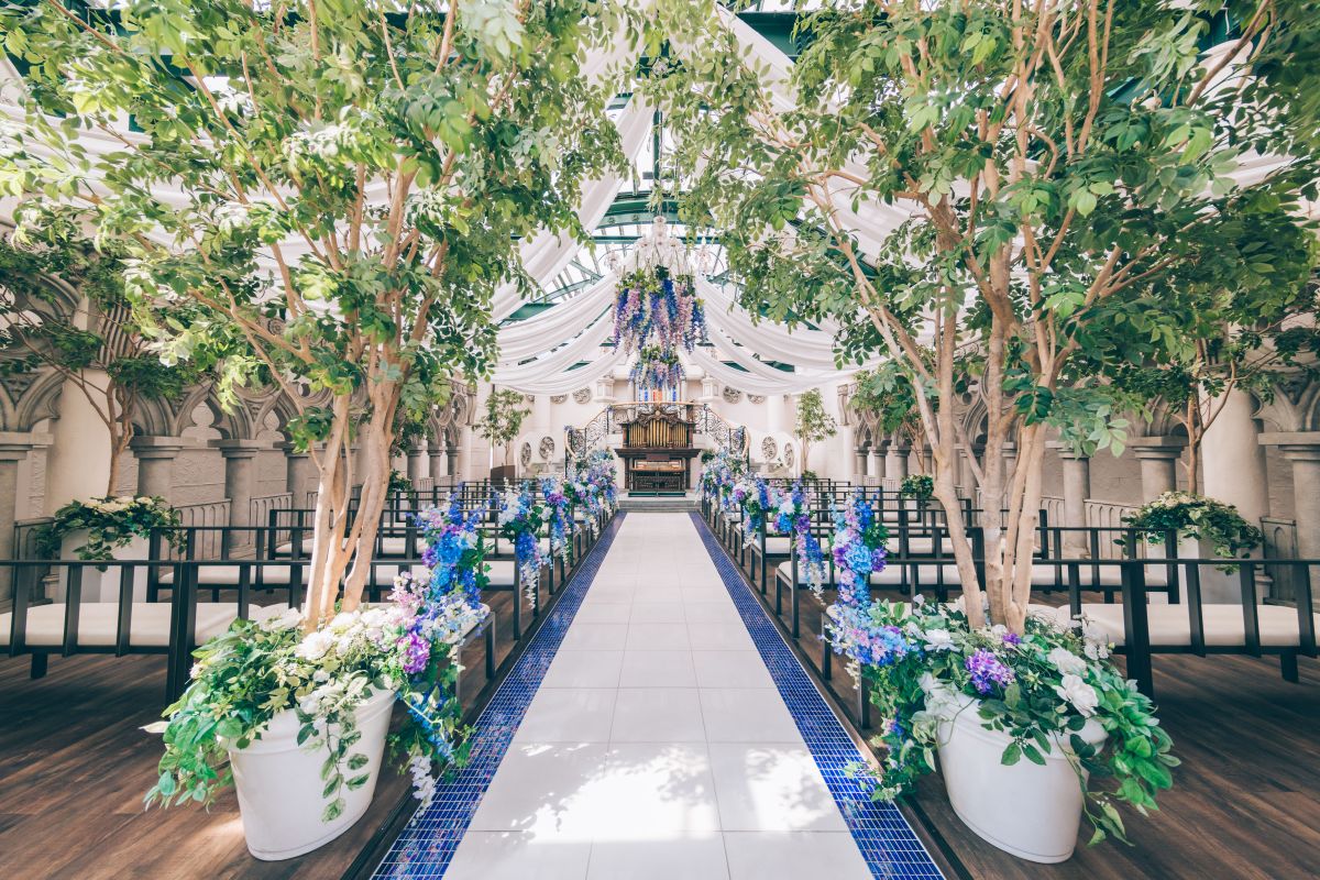 天井から降り注ぐ自然光、爽やかなグリーンに包まれたチャーチで憧れのウエディングを、おふたりらしいスタイルで。