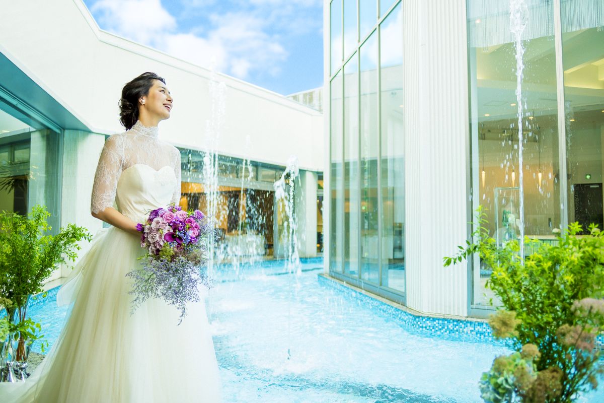自然光降り注ぐ白亜のチャペルは、ガラス越しにお二人を祝福する噴水や、光の空間にこだまするウェディングシンガーの生歌など、ドラマティックな演出で彩ってくれます。