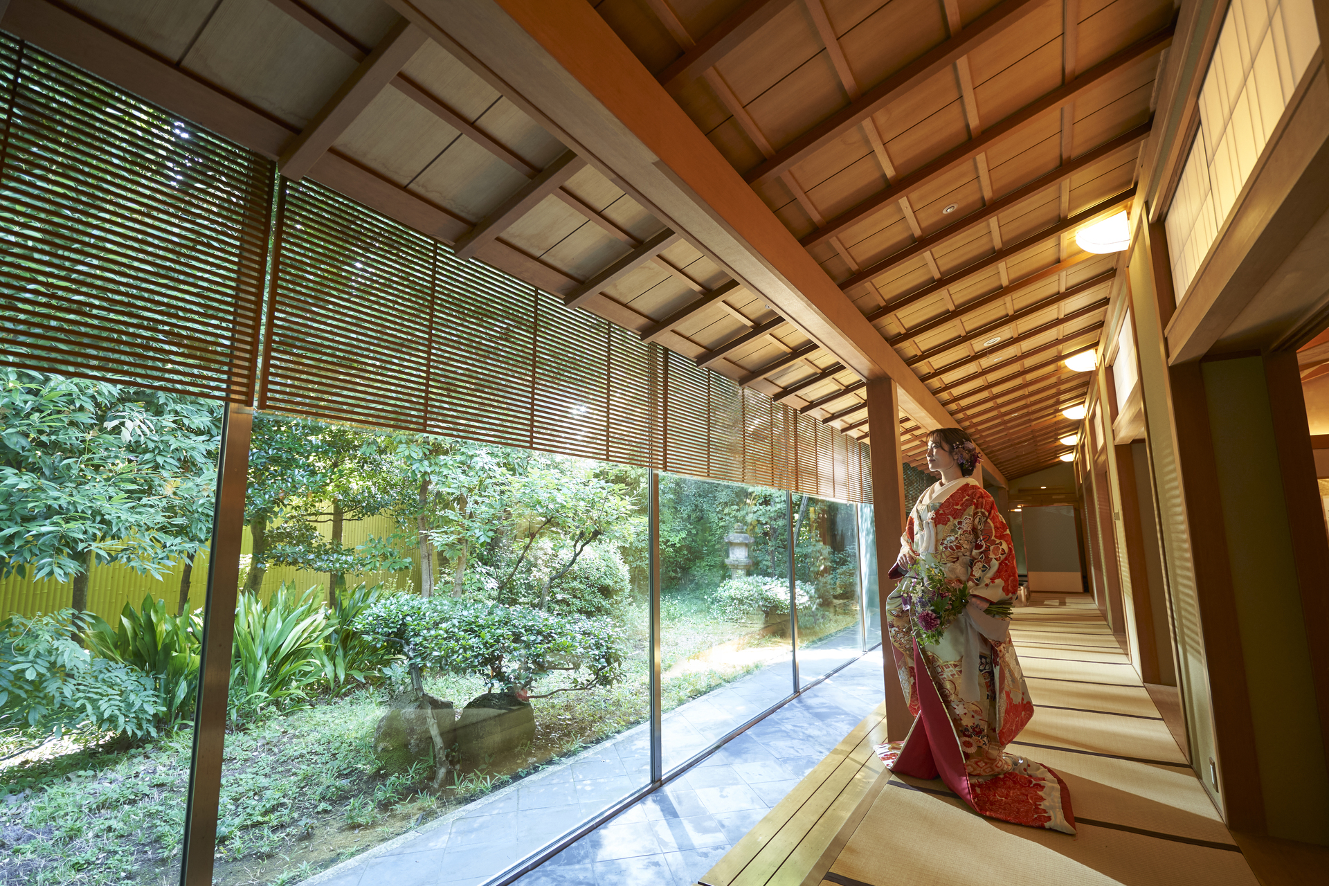 宮大工の高い技術により、欄干や照明など細部までこだわり抜かれた美しい日本建築。和装はもちろん、洋装でのパーティも人気です。ホテルが手掛ける料亭だからこそ届けられる、質の高いおもてなしが魅力です。